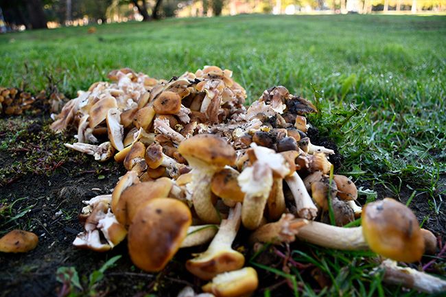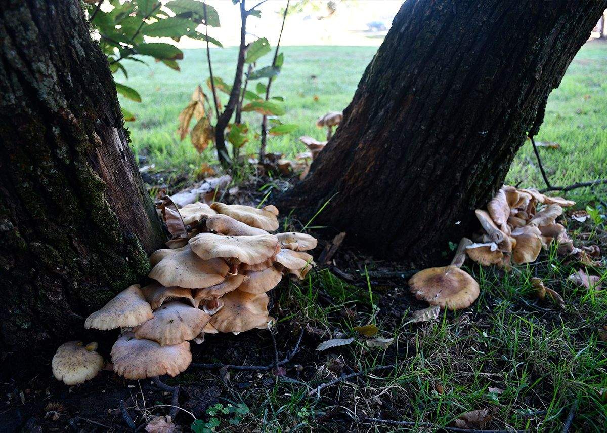 Foto: Armillaria Mellea en el Parque del Temple. Fotografía tomada por Dani Merino (InfoBierzo), el jueves 10 de noviembre del 2022, un día antes de la eliminación del hongo por parte del Ayuntamiento de Ponferrada / InfoBierzo