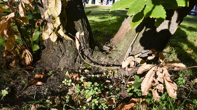 Foto: Mismo castaño que en la anterior fotografía. Sin embargo, esta captura ha sido tomada el viernes, 11 de noviembre, cuando el Servicio de Parques y Jardines ha eliminado la Armillaria Mellea / Dani Merino InfoBierzoSin embargo, "el problema está debajo de la tierra", apunta Canedo, ya que aunque se eliminen la parte de la seta que está encima del sustrato, la otra parte, la subterránea, es también un factor a tener a cuenta, ya que a corto plazo la eliminación de la Armillaria Mellea podría evitar su expansión, pero remover el sustrato, aunque sea para someterlo a un tratamiento, podría motivar a la expansión de la Armillaria Mellea. En esta línea, Canedo sostiene que este hongo parásito sale "algunos años", y normalmente "por estas fechas" cuando se dan las "condiciones propicias". Aunque el Jefe de Parques y Jardines de Ponferrada, añade que la presencia de este hongo "no es un problema para nuestro parque", ya que la masa de árboles que prima no son el castaño y encinas, especies a las que más afecta la Armillaria Mellea.