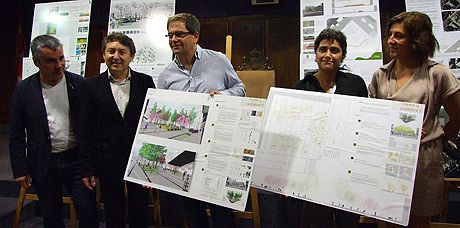 La idea del proyecto de Martín Contra es un pavimento en el que se combina piedra de calatorao, suelo de caucho para los juegos infantiles y losas prefabricadas con árido de basalto.