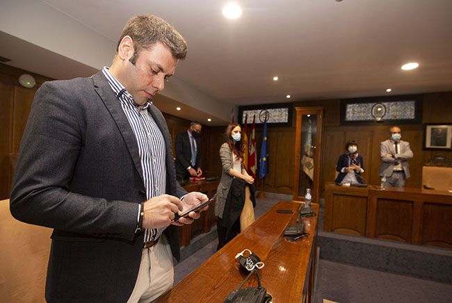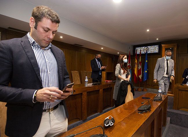 El concejal de CB, Iván Alonso, durante el pleno extraordinario el Ayuntamiento de Ponferrada, para dar cuenta de la renuncia de su compañero de partido, Pedro Muñoz, a su acta de concejal (Fotos César Sánchez / ICAL)