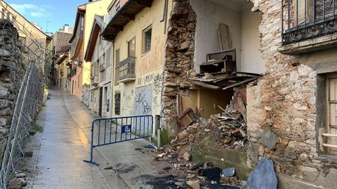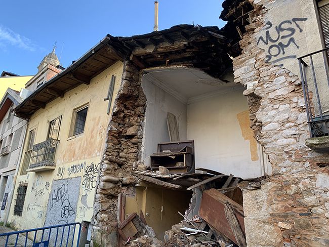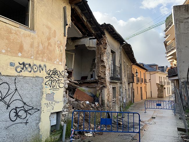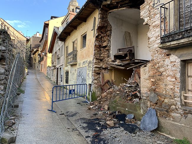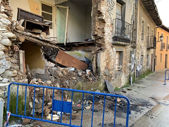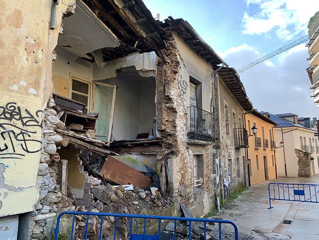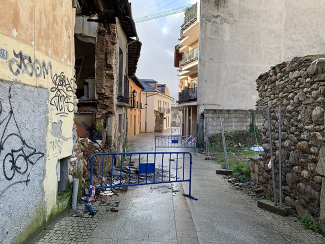 Estado actual de la calle del Comendador en PonferradaLa calle del Comendador de Ponferrada -detrás del Castillo de los Templarios- permanece cerrada al tránsito peatonal a causa de un importante derrumbamiento de un edificio, cuyos escombros caen sobre la propia calzada. De hecho, el estado actual de la estructura de la vivienda en cuestión se encuentra tan inestable que está a punto de desplomarse por completo, dado que tanto el techo como la planta superior del mismo y algunos muebles de su interior ya penden prácticamente de un 'hilo'. Todo ello supone un evidente peligro para ciudadanos y turistas, por lo que el Ayuntamiento de la capital berciana tomó la decisión de posicionar dos vallas que acotan el perímetro.
