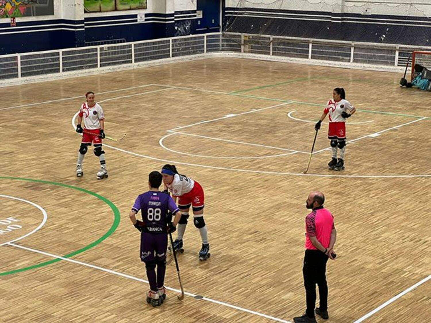 El partido comenzó con constantes acercamientos sobre las áreas de ambas porterías. Si bien, el peso del partido era de las Águilas, las contras veloces eran el peligro del Patín Berenguela, que con una pista rápida, eran peligrosas en sus llegadas. Con algunos sobresaltos para ambos conjuntos no se rompió la paridad en el electrónico hasta que a los once minutos Pía Sarmiento, que tras una buena combinación del equipo, pudo disparar casi sin ángulo, entrando su disparo por debajo del guantelete de la portera.