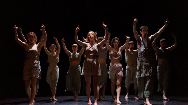 En “Quo”, el nuevo programa de la compañía vasca, se nos invita a imaginar el lugar para la danza a partir de tres coreografías de Hilde Hoch, Gil Harush y Wubkje Kuindersma. En ese mosaico, la pieza “Quorum” nos habla del agua, el fuego, el aire y la tierra, los cuatro elementos naturales, para recrear un territorio ancestral, sobrio y hermoso, donde encontrar ese frágil sosiego que tal vez hemos perdido. “Quorum” es una pieza de Hilde Koch que se nutre de las aportaciones de la compositora Paula Olaz, la diseñadora de moda sostenible Tytti Thusberg y la diseñadora de iluminación Alaine Arzoz. El trabajo conjunto de estas mujeres converge en una pieza en la que Koch comparte el trabajo de escritura coreográfica junto con los bailarines de Dantzaz gracias al apoyo de la Red Eurorregional.