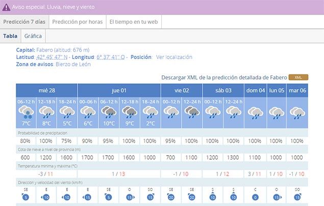 En Fabero la nieve caída durante la noche ha dejado cerca de diez centímetros de espesor. Según las predicciones, las precipitaciones en forma de nieve pueden continuar hasta la tarde, donde la nieve dejará paso a la lluvia. Las mínimas serán de menos tres grados y las máximas de once.
