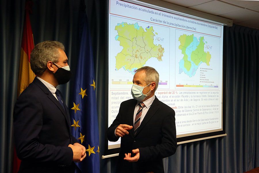 El delegado de la AEMET en Castilla y León, Juan Pablo Álvarez, y el delegado del Gobierno en la Comunidad, Javier Izquierdo, presentan el resumen climático del otoño en Castilla y León y realiza las previsiones para el invierno (Foto: Rubén Cacho / ICAL)
