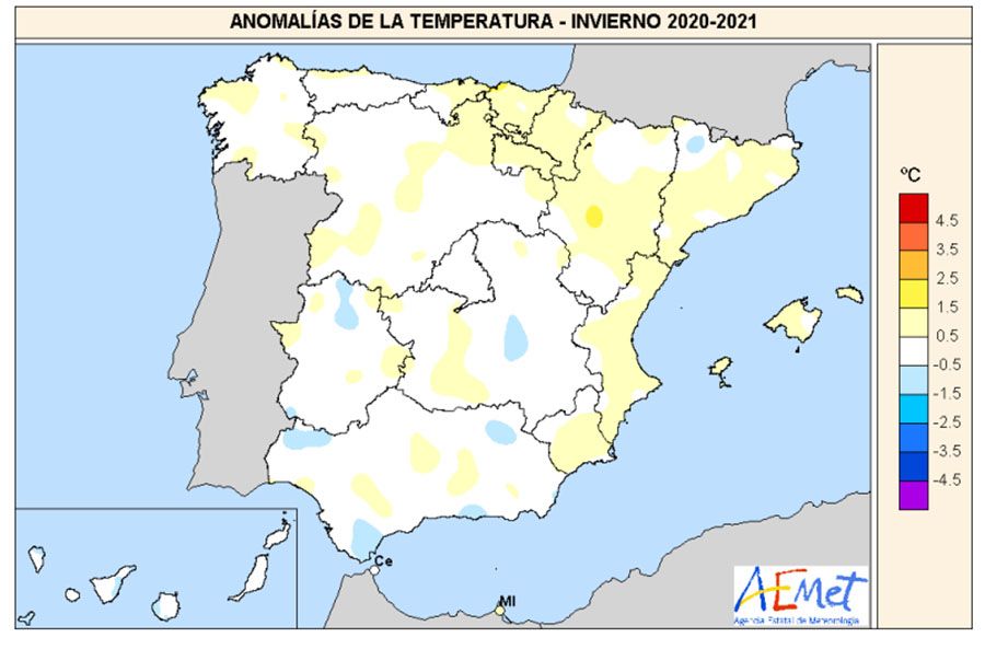 El día más caluroso del invierno fue precisamente ayer, miércoles 17 de marzo, con una temperatura media de 23,90 grados centígrados. En el extremo opuesto, el día más gélido fue el 9 de enero, cuando los mercurios se desplomaron hasta -9,20ºC, siendo ésta la temperatura mínima más baja registrada en El Bierzo desde 2017 (-9,60ºC el 19 de enero de 2017).
