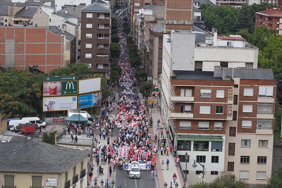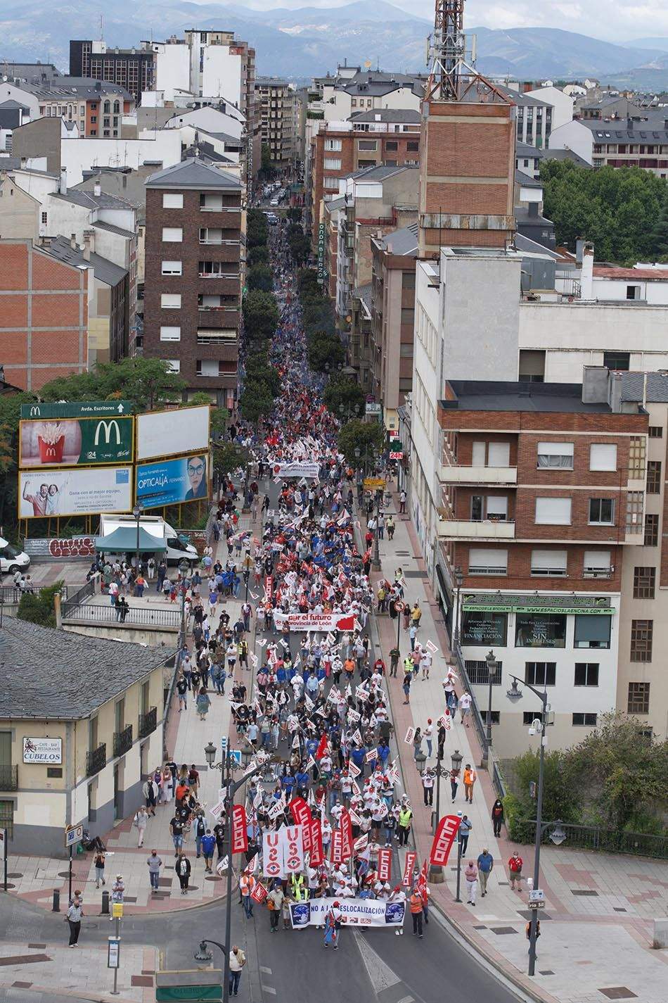 Bajo el lema "Por el futuro del Bierzo. Únete a la lucha. 0% despidos. NO a la deslocalización de LM", la marabunta se concentró en la Plaza Lazúrtegui y emprendió la marcha hasta la Plaza del Ayuntamiento, donde continuaron con las reivindicaciones