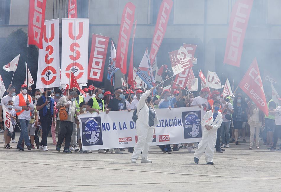 A las 12:00 horas de este sábado, la Plaza Lazúrtegui de la capital berciana se convirtió en el epicentro de las protestas, escenificando la indignación y oposición de los bercianos al expediente de despidos colectivos iniciado por la compañía para rescindir 393 contratos, que implicaría un duro revés a una comarca ya de por sí maltrecha a consecuencia del cierre de la minería, el desmantelamiento de las centrales térmicas y las consecutivas crisis económicas.