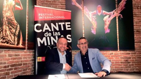 El presidente del Consejo Comarcal del Bierzo, Gerardo Álvarez Courel, y el presidente de la Fundación Cante de las Minas y alcalde de La Unión, Pedro López Milán, han firmado un convenio de colaboración en el que establecen, por primera vez en las 59 ediciones del Festival Internacional Cante de las Minas, a la comarca del Bierzo como sede de una de las pruebas selectivas.