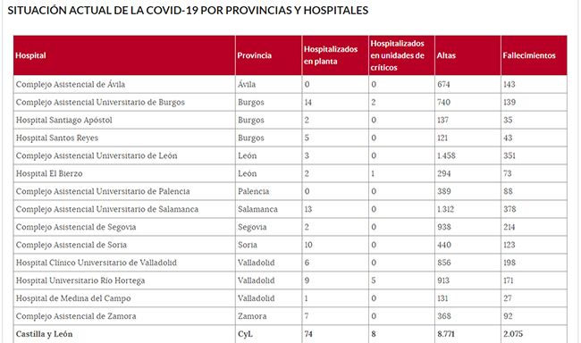 Situación actual hospitalaria en la Comunidad / Fuente: JCYL