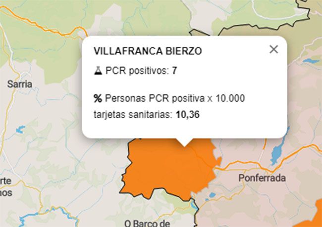 PCR positivas en Villafranca del Bierzo durante los últimos 7 días / Fuente: JCYL