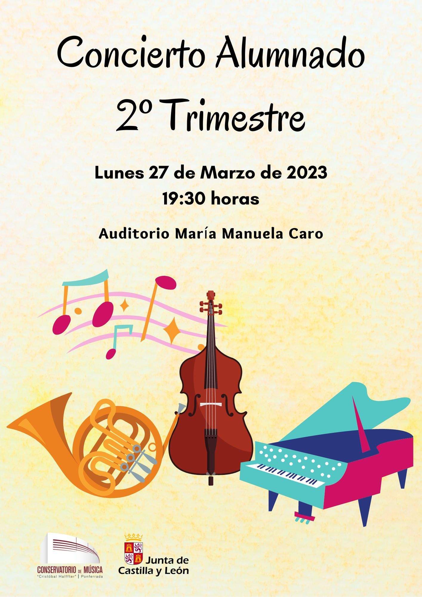El Conservatorio celebra el fin de trimestre con dos conciertos en los que el alumnado será el gran protagonista. El lunes 27 de marzo, a las 19:30 horas, tendrá lugar el tradicional Concierto de Alumnos, con el que el público podrá disfrutar de una pequeña muestra del trabajo que se realiza en el centro.