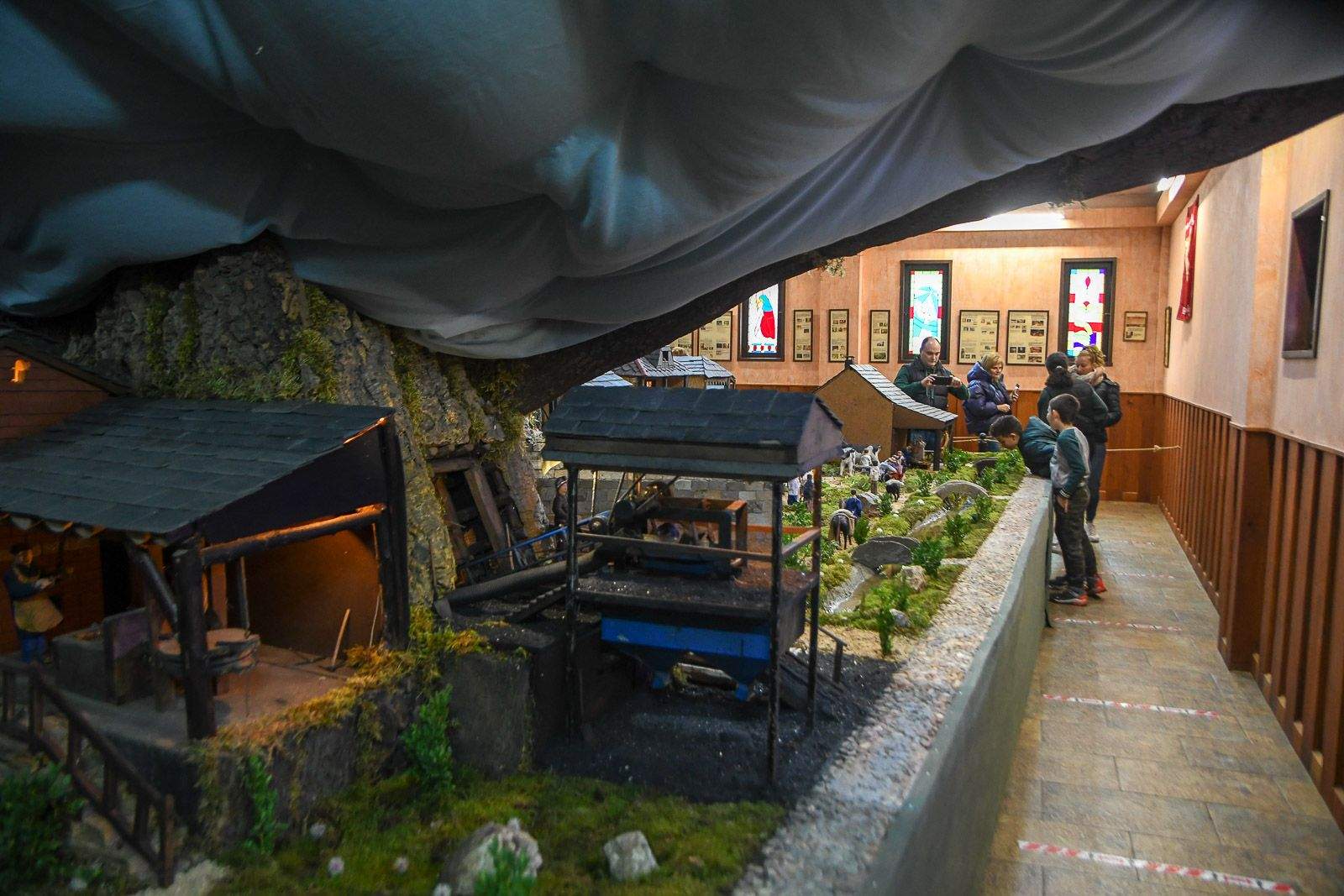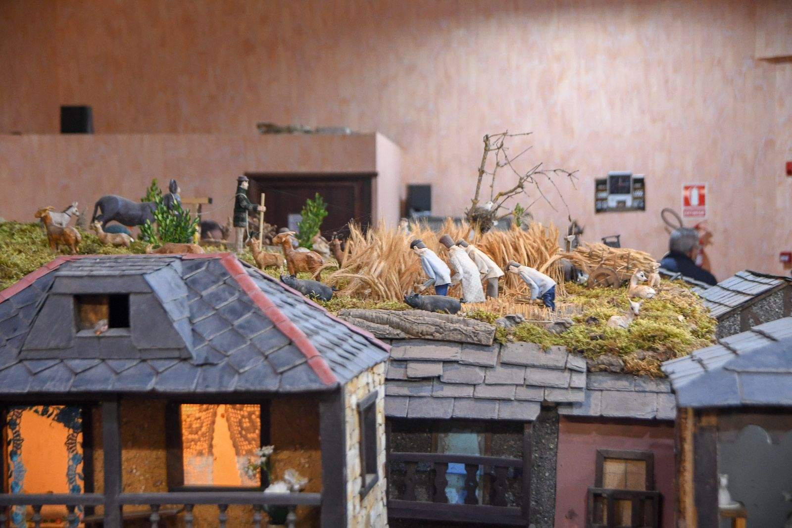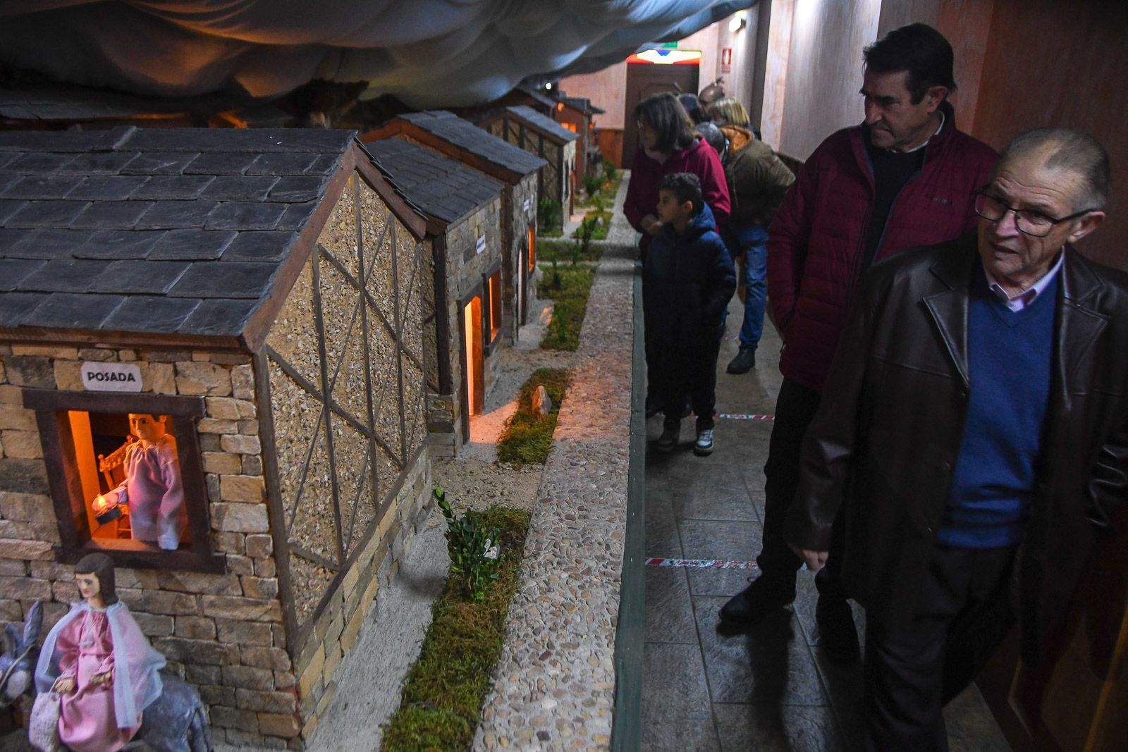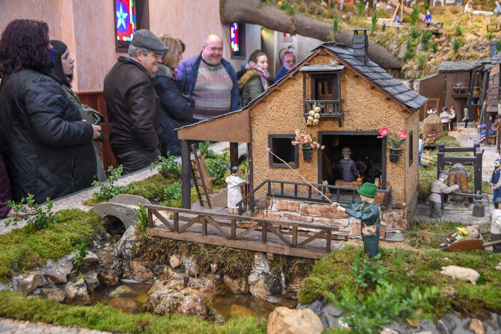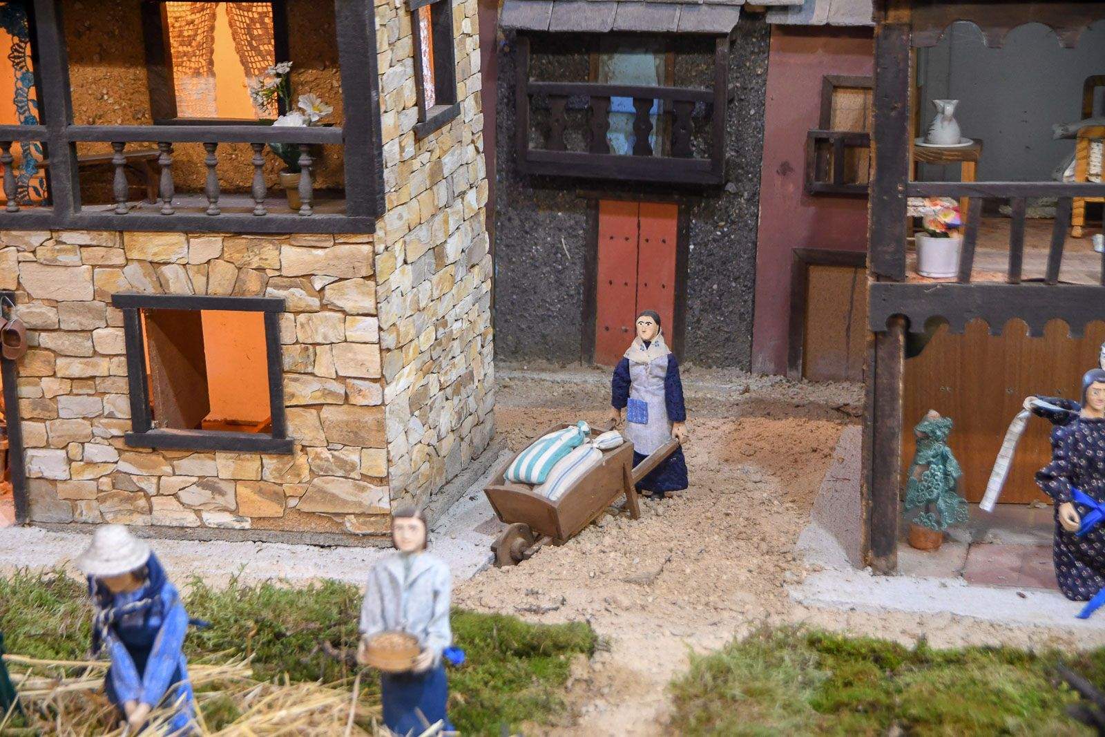 La escuela con el maestro enseñando a los alumnos, una partida de cartas en un bar cualquiera de la localidad y hasta el propio Ayuntamiento son otros de los elementos que no faltan en este Belén que termina su recorrido con la escenificación del Nacimiento.