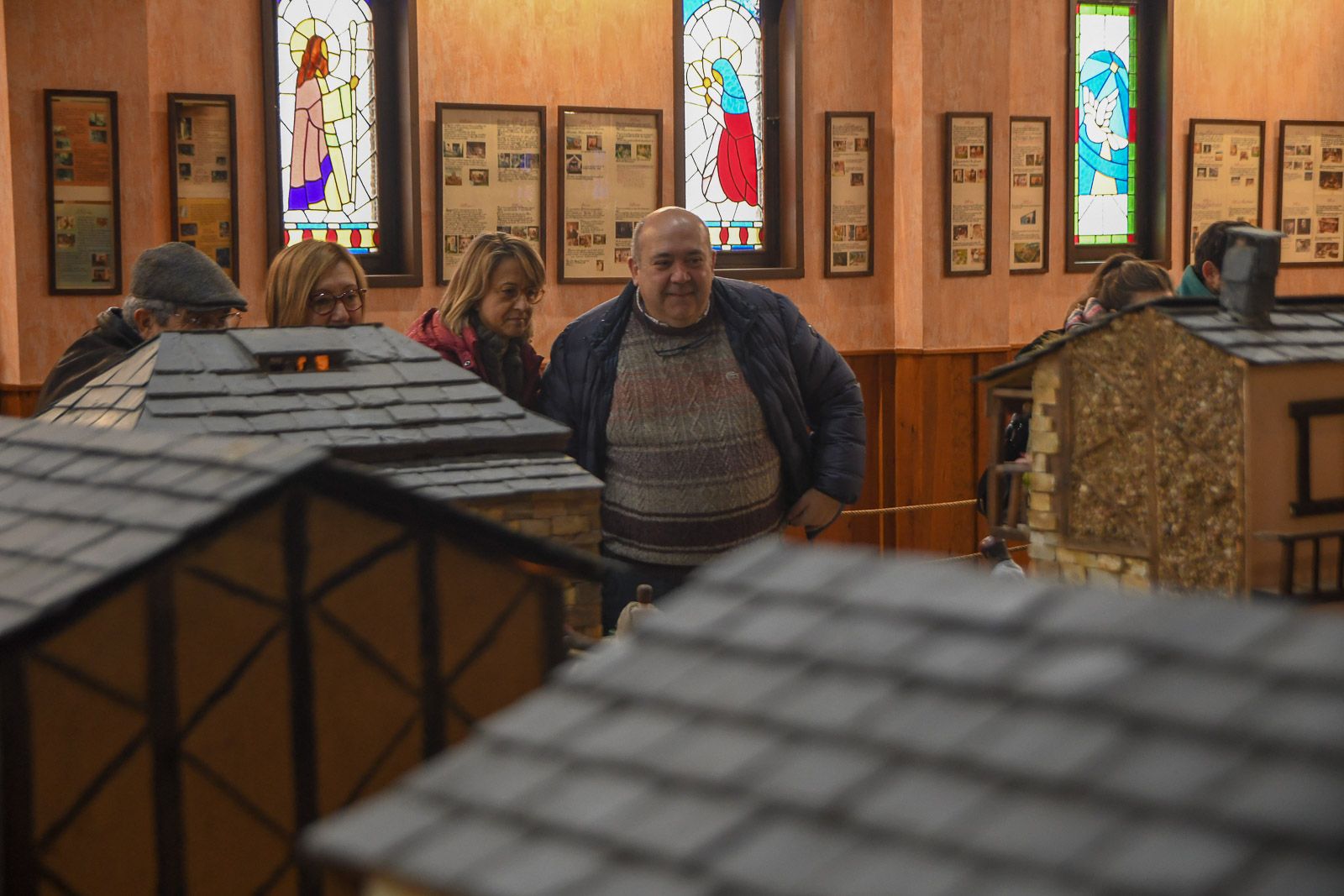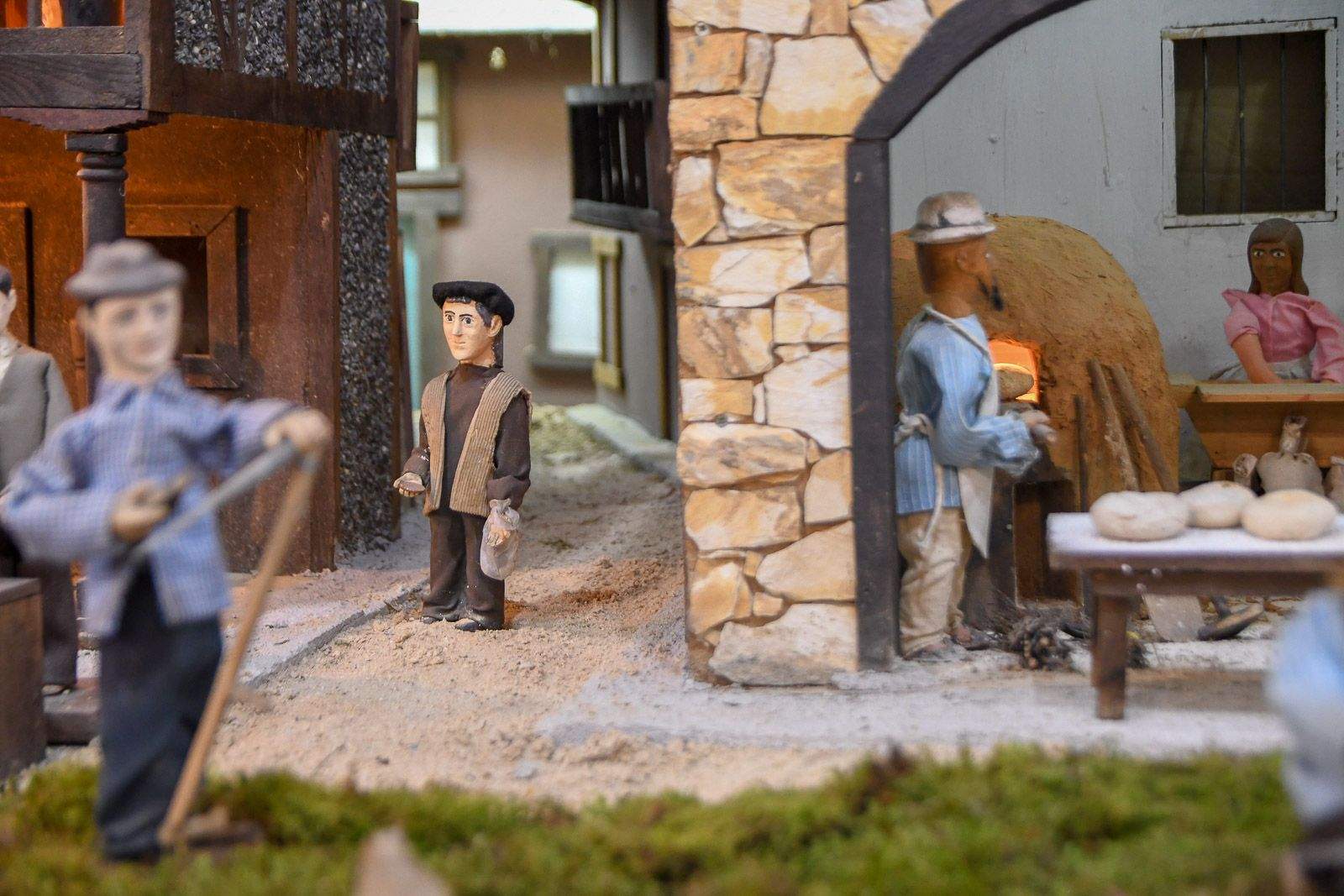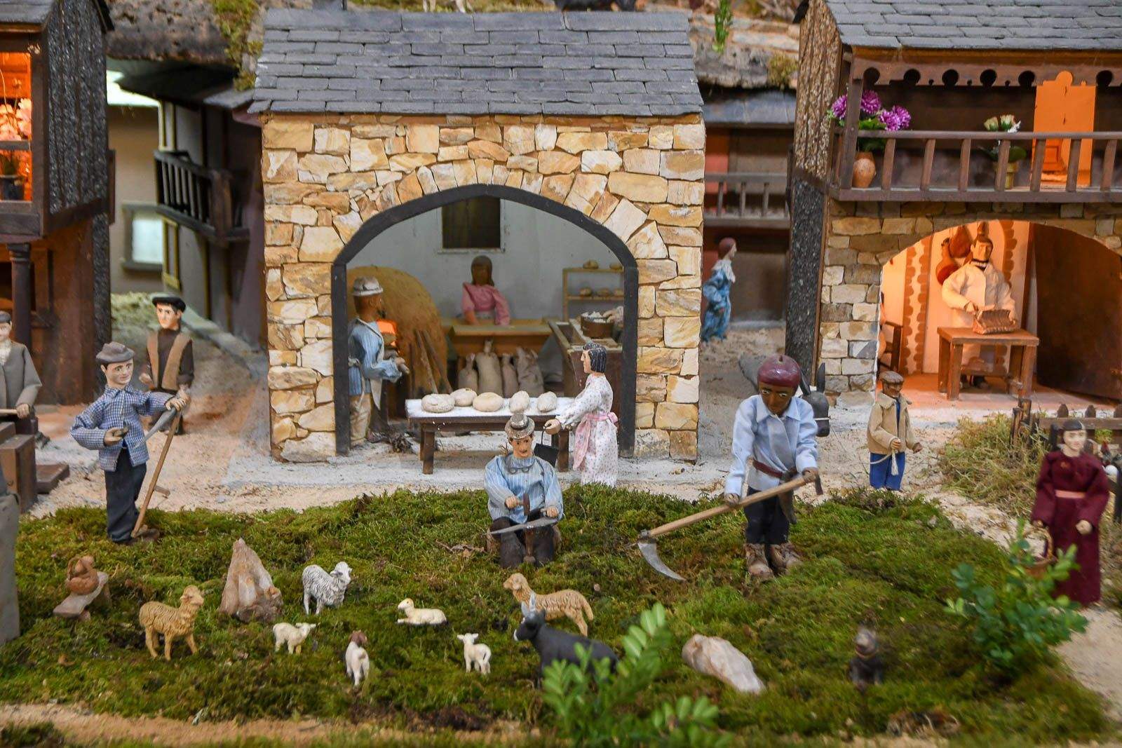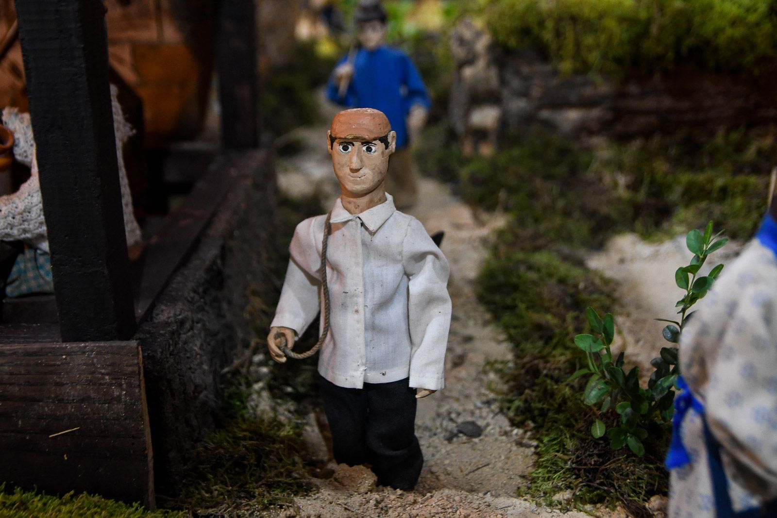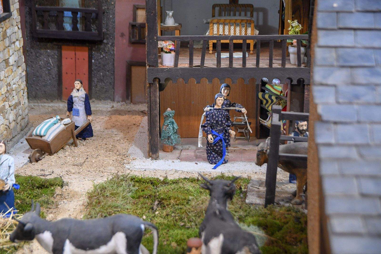 La escuela con el maestro enseñando a los alumnos, una partida de cartas en un bar cualquiera de la localidad y hasta el propio Ayuntamiento son otros de los elementos que no faltan en este Belén que termina su recorrido con la escenificación del Nacimiento.