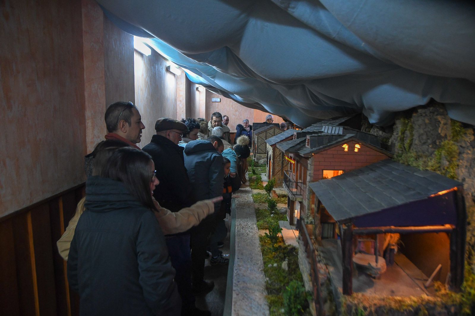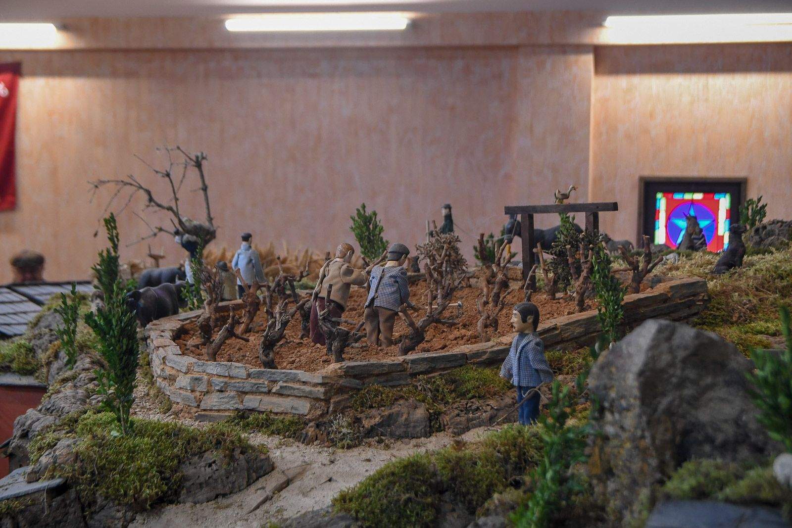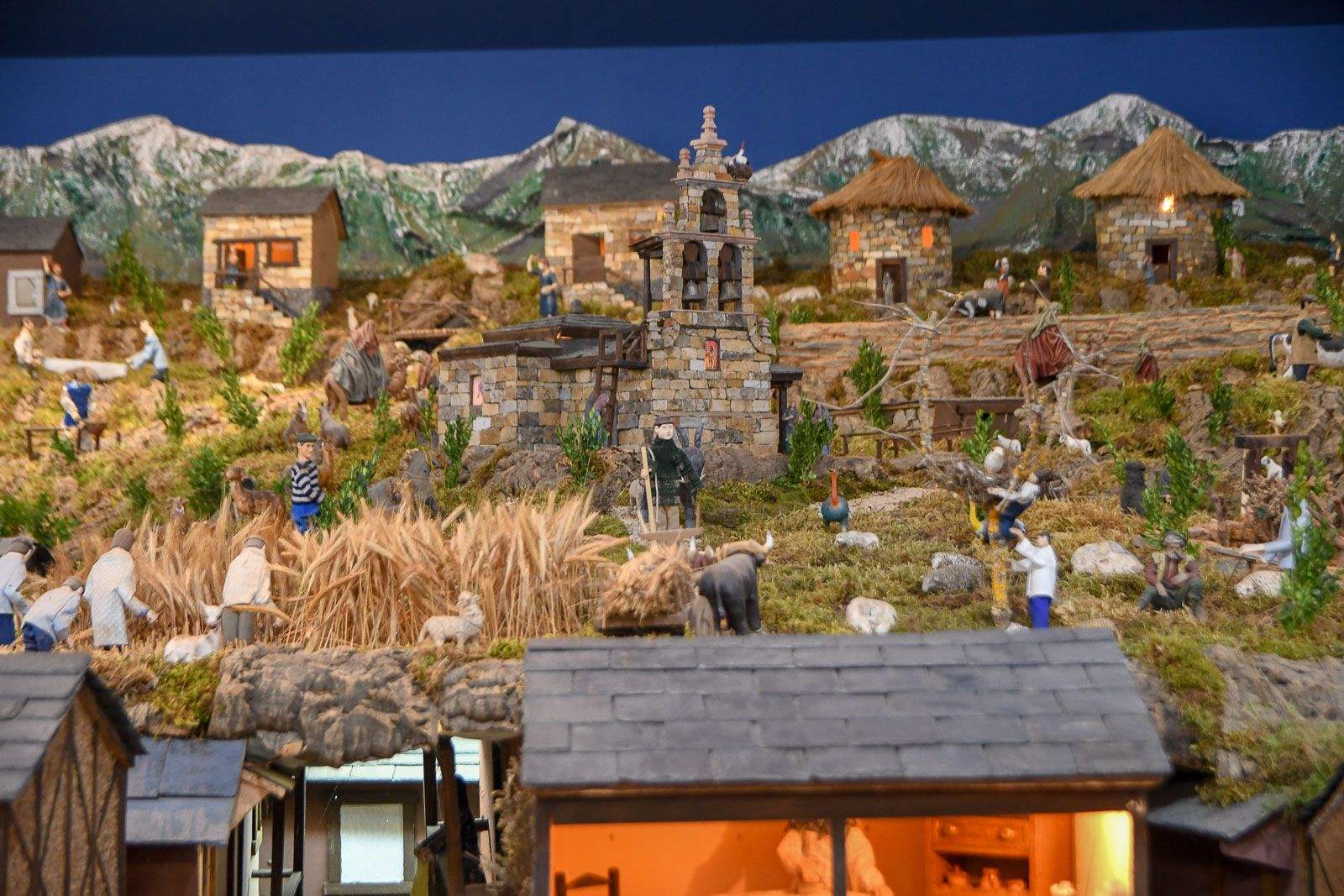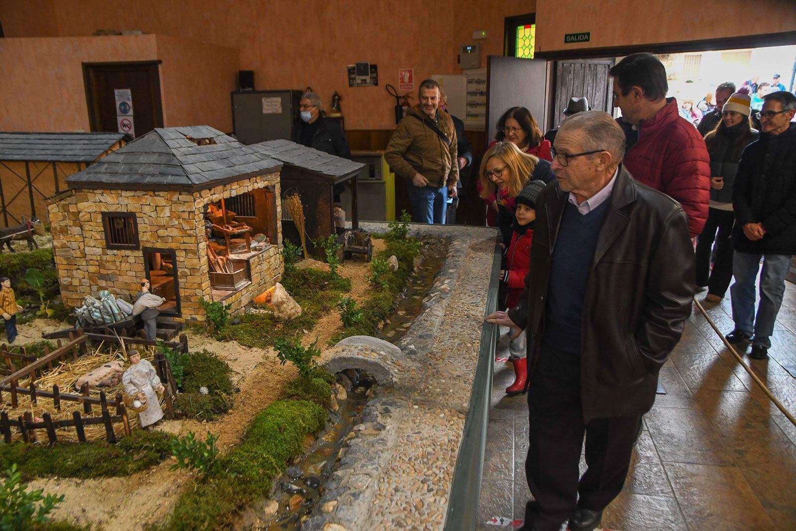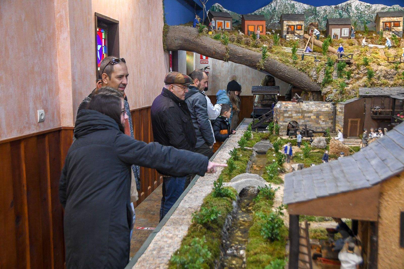 La escuela con el maestro enseñando a los alumnos, una partida de cartas en un bar cualquiera de la localidad y hasta el propio Ayuntamiento son otros de los elementos que no faltan en este Belén que termina su recorrido con la escenificación del Nacimiento.