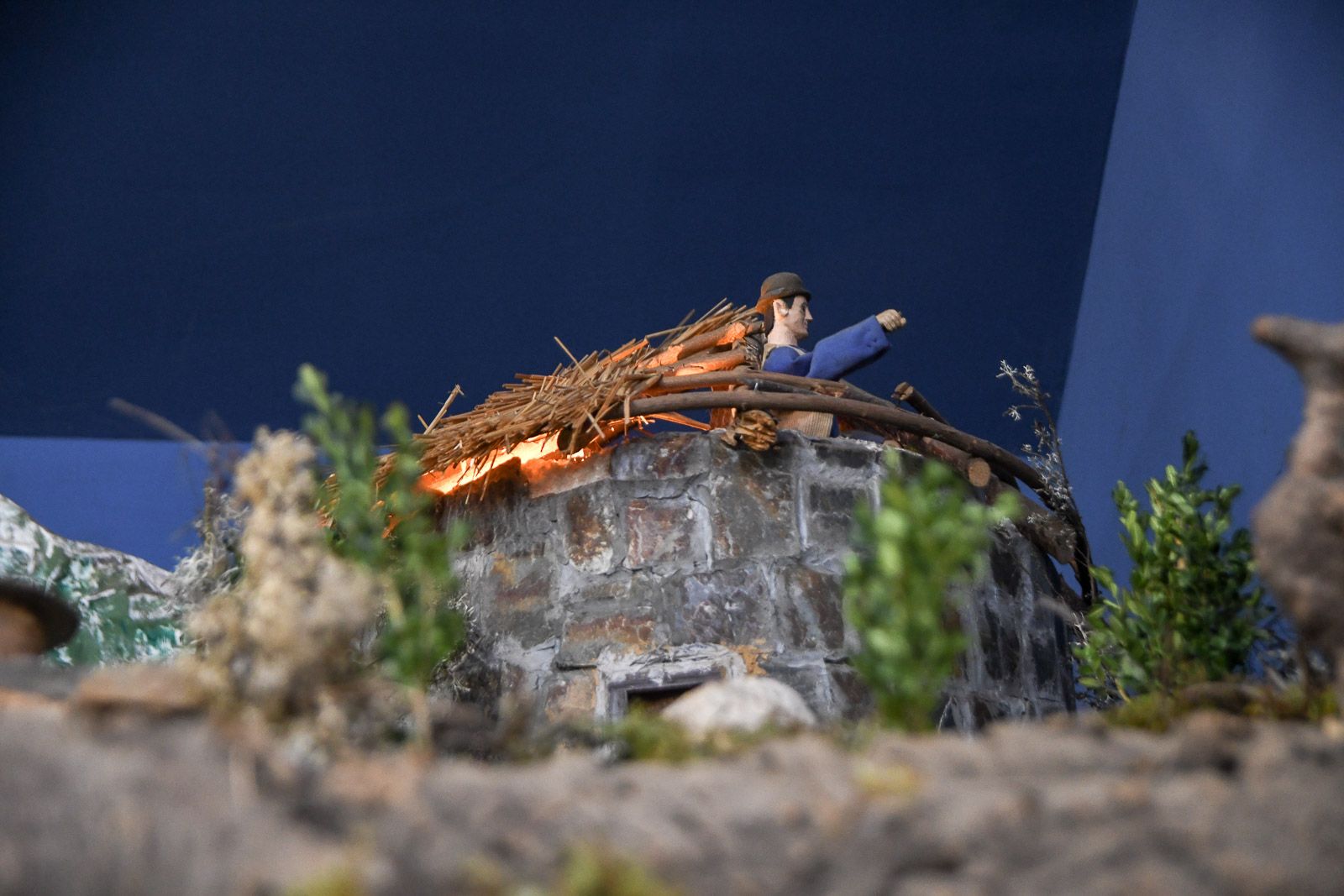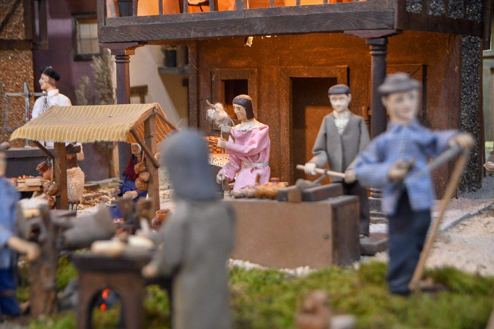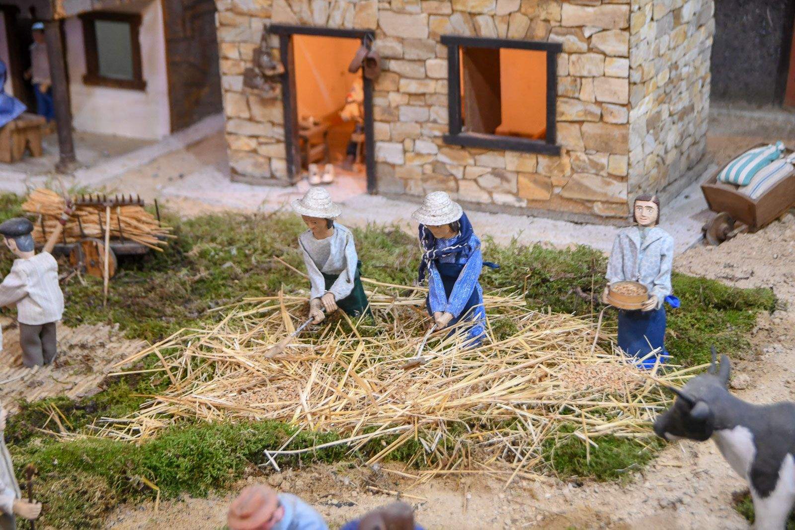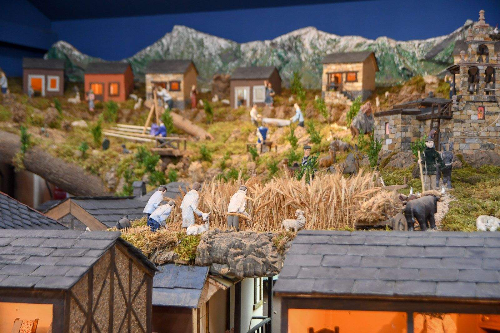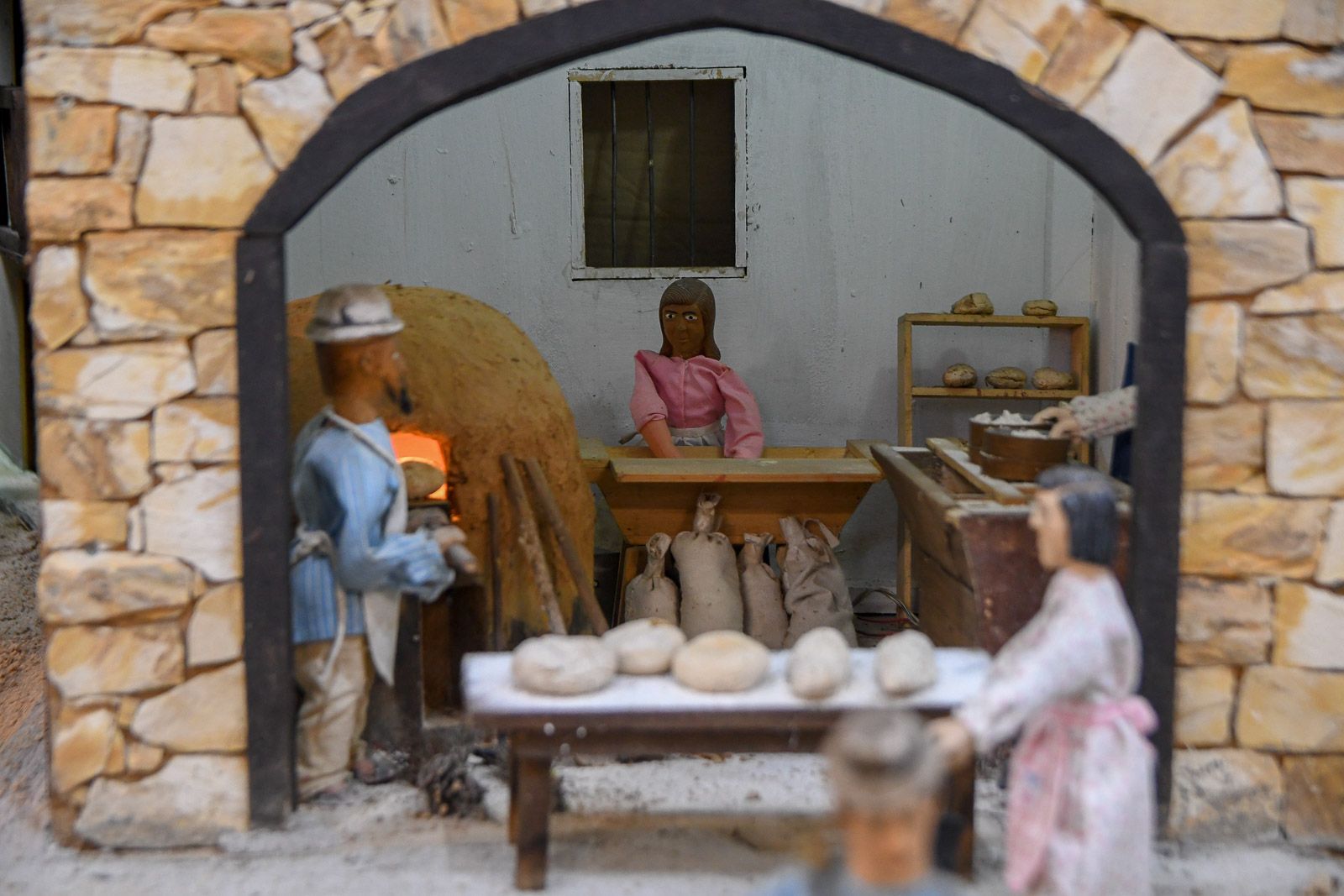 La escuela con el maestro enseñando a los alumnos, una partida de cartas en un bar cualquiera de la localidad y hasta el propio Ayuntamiento son otros de los elementos que no faltan en este Belén que termina su recorrido con la escenificación del Nacimiento.