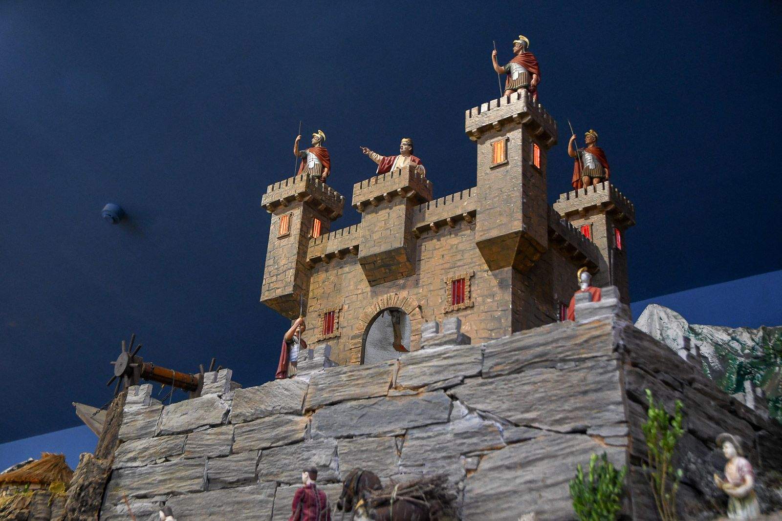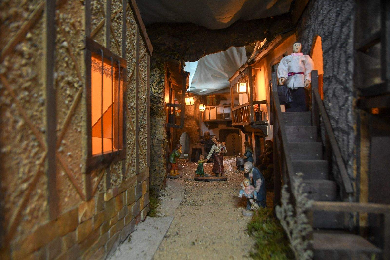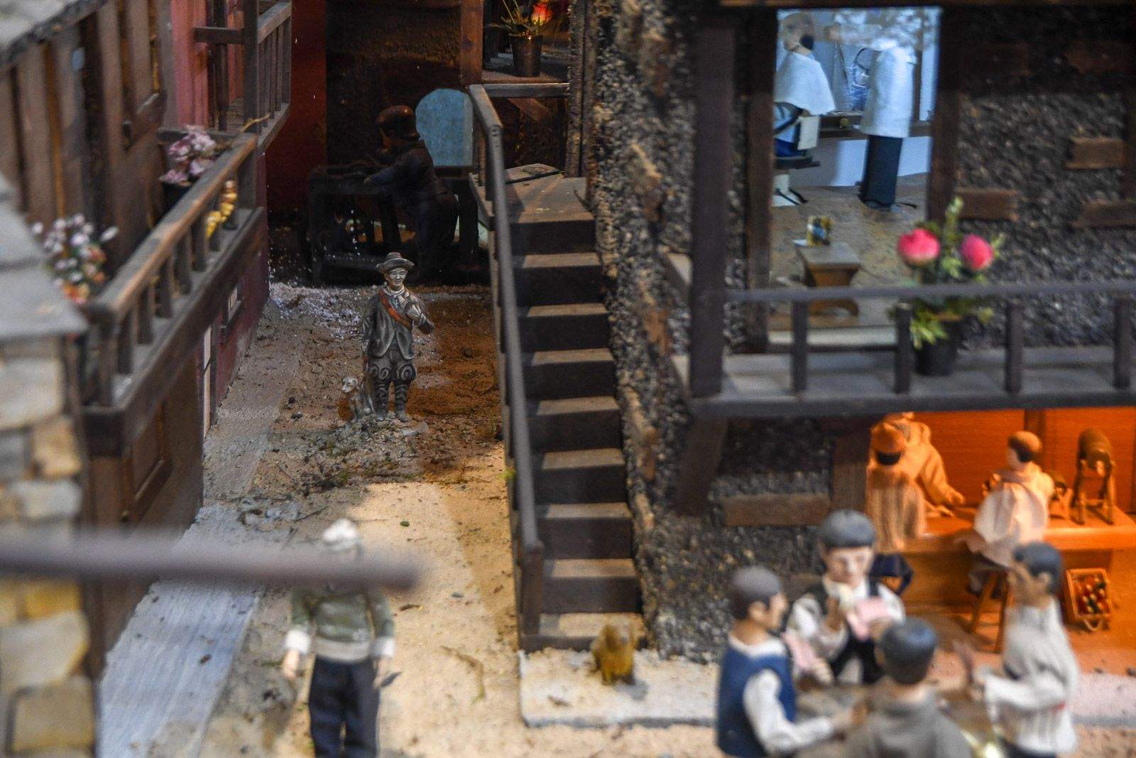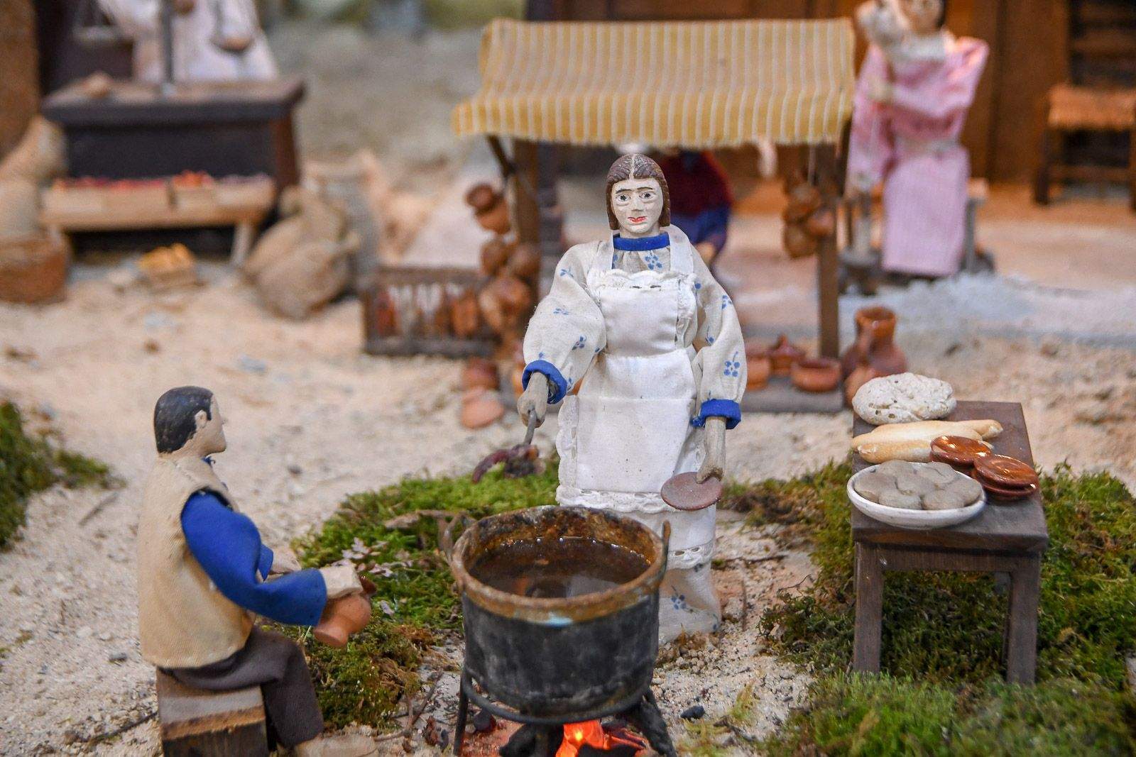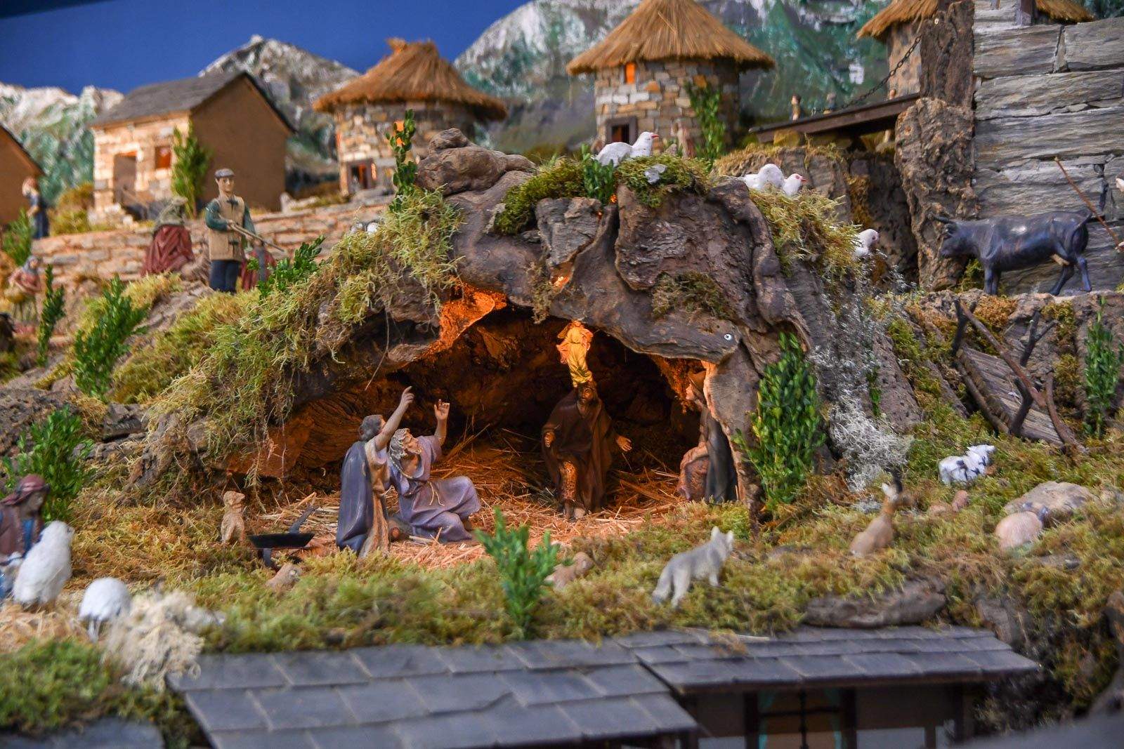 La escuela con el maestro enseñando a los alumnos, una partida de cartas en un bar cualquiera de la localidad y hasta el propio Ayuntamiento son otros de los elementos que no faltan en este Belén que termina su recorrido con la escenificación del Nacimiento.