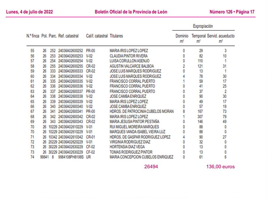 Las afecciones originadas por la ejecución del citado proyecto se concretan de la siguiente manera: