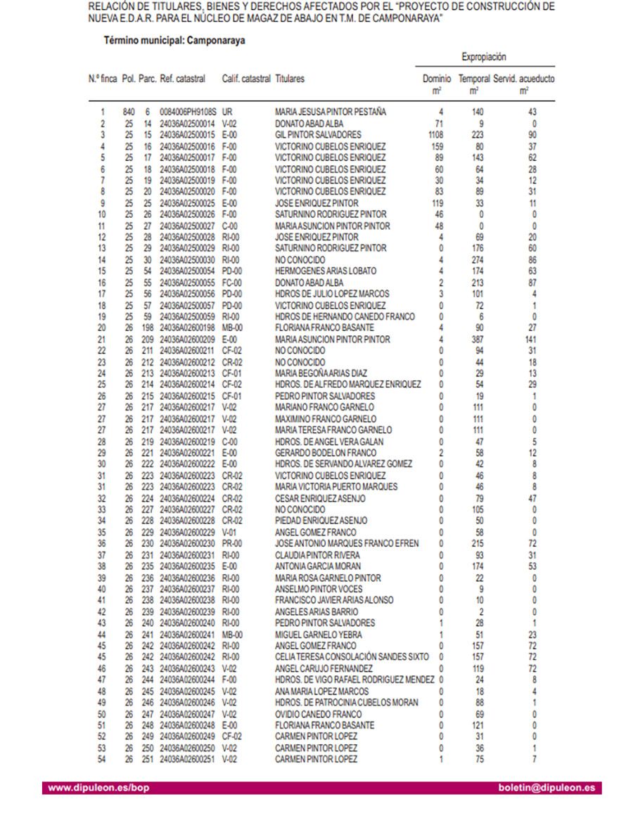 En el expediente expropiatorio la Sociedad Pública de Infraestructuras y Medio ambiente de Castilla y León S.a. (SoMacyL) asumirá la condición de beneficiaria del mismo, de conformidad, tanto con lo dispuesto en la Ley 12/2006, de 26 de octubre, de creación de la citada empresa pública y en el Decreto 76/2008, de 30 de octubre por el que se regulan las encomiendas a la misma, como por el convenio de cooperación suscrito entre el ayuntamiento de camponaraya y la citada entidad beneficiaria.