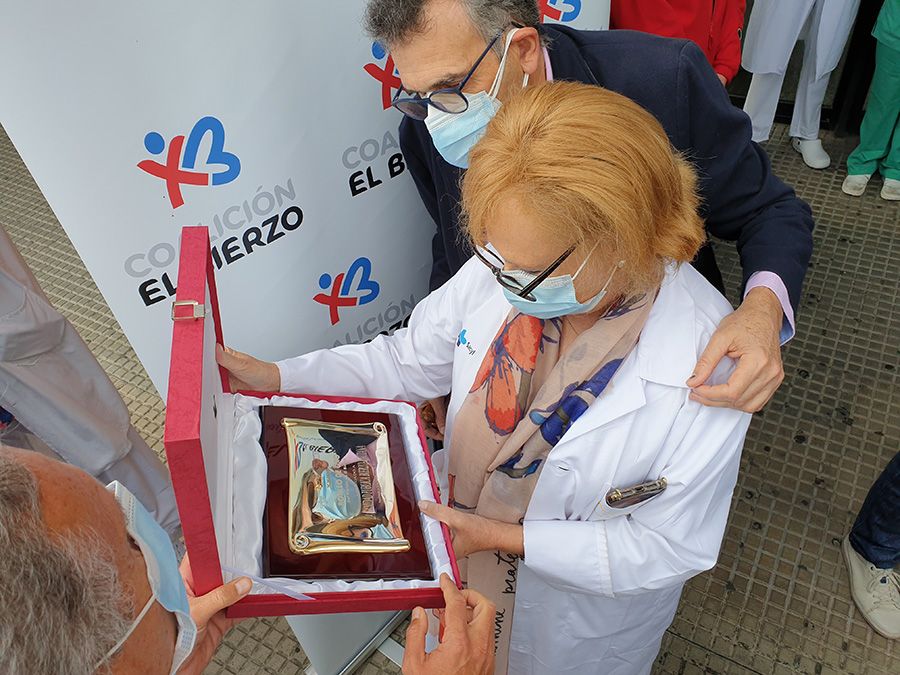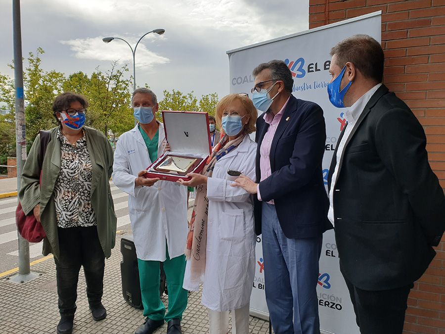 El galardón que otorga el Partido del Bierzo a quienes han puesto su empeño en servir a la Comarca en múltiples disciplinas, pone lustro a la labor que han realizado los sanitarios de la Comarca durante la pandemia, recibiendo el 'oro berciano' a las puertas del hospital de la Comarca por Coalición Por El Bierzo, alrededor de las 11:30 de este 22 de septiembre. Así, el XXXV Botillo de Oro ha sido entregado a la responsable de la Gerencia de Asistencia Sanitaria del Bierzo (GASBI), Pilar Fernández Ampudia, y del jefe de la Unidad de Cuidados Intensivos (UCI), Braulio Álvarez.