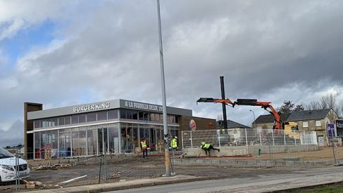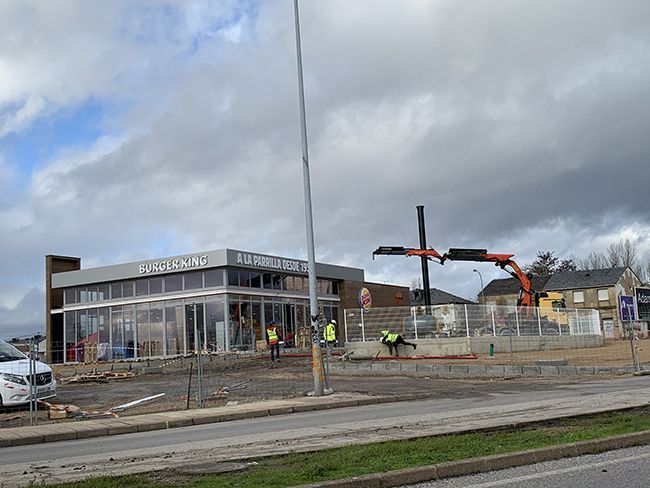 La noticia de la instalación de esta cadena de comida rápida en la capital berciana, con su servicio 'Auto King' para recoger comida desde el coche, se conoció hace más de un mes y, desde entonces, el proceso de puesta a punto del local progresa en tiempo récord. De hecho, hace apenas una semana se instaló el edificio modular completo, haciendo palpable la inminente apertura. En estos momentos, los operarios trabajan en el aparcamiento y el asfaltado del terreno que rodea el local propiamente dicho, dando así los últimos pasos para tener definitivamente lista esta hamburguesería tan esperada por los bercianos.
