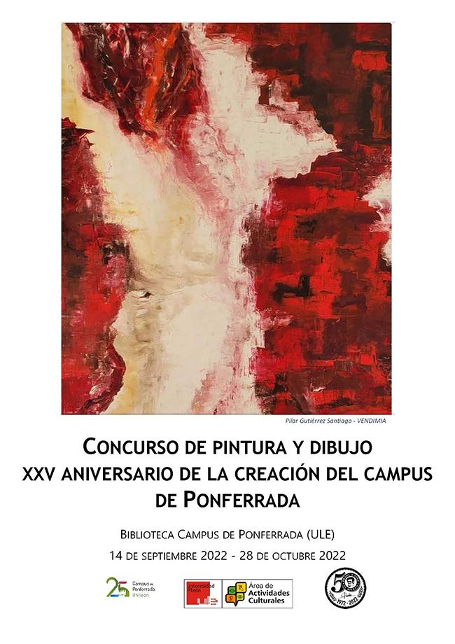 La biblioteca del Campus de Ponferrada de la Universidad de León (ULE) acogió este miércoles la inauguración de la exposición con una selección de las obras que participaron en el concurso de pintura y dibujo organizado con motivo del XXV aniversario de las instalaciones universitarias bercianas. La muestra presenta 11 obras, entre las que destaca ‘Vendimia’, la ganadora del concurso, elaborada por la secretaria general de la ULE, Pilar Gutiérrez.