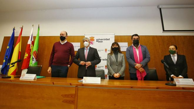 El rector de la Universidad de León (ULE), Juan Francisco García Marín, presidió este jueves la firma de tres convenios marco de colaboración entre el Campus de Ponferrada y la Fundación Cupa Group, la empresa El Cambrillón y la escuela de danza Coppelia. Con estos acuerdos, la institución universitaria trata de dar forma a una “colaboración mutua y continua” que se plasmará en los diversos acuerdos específicos que den pie a proyectos concretos. Al respecto, el rector destacó que la colaboración con estos tres actores está relacionada con infraestructuras que se van a abrir en el Campus berciano, lo que supone un “nuevo impulso” a las instalaciones de la ULE en la Comarca.