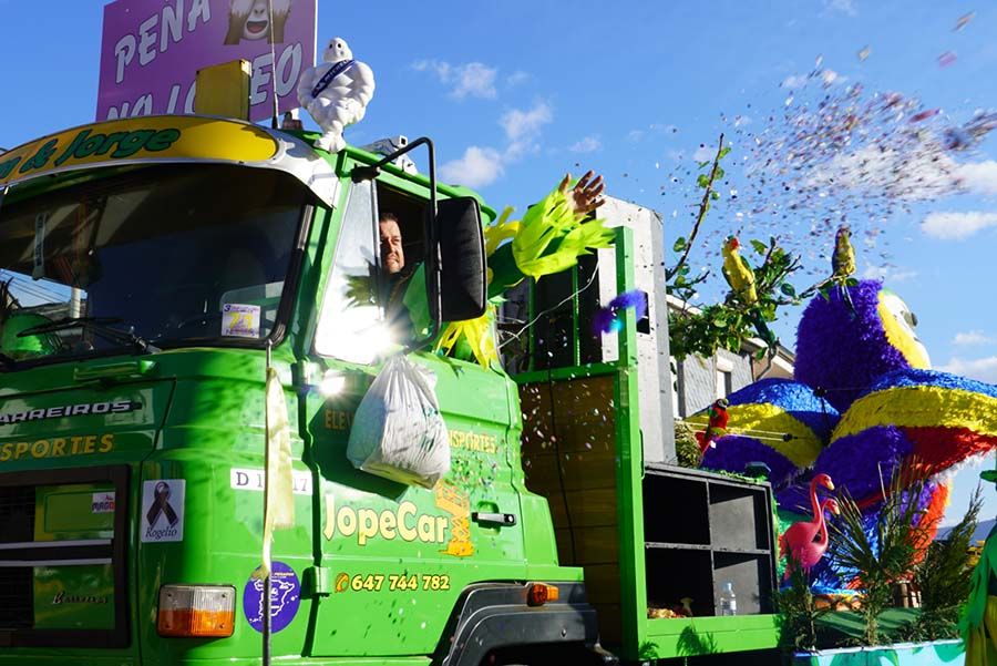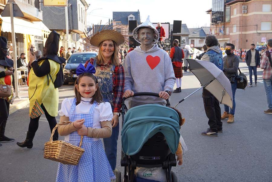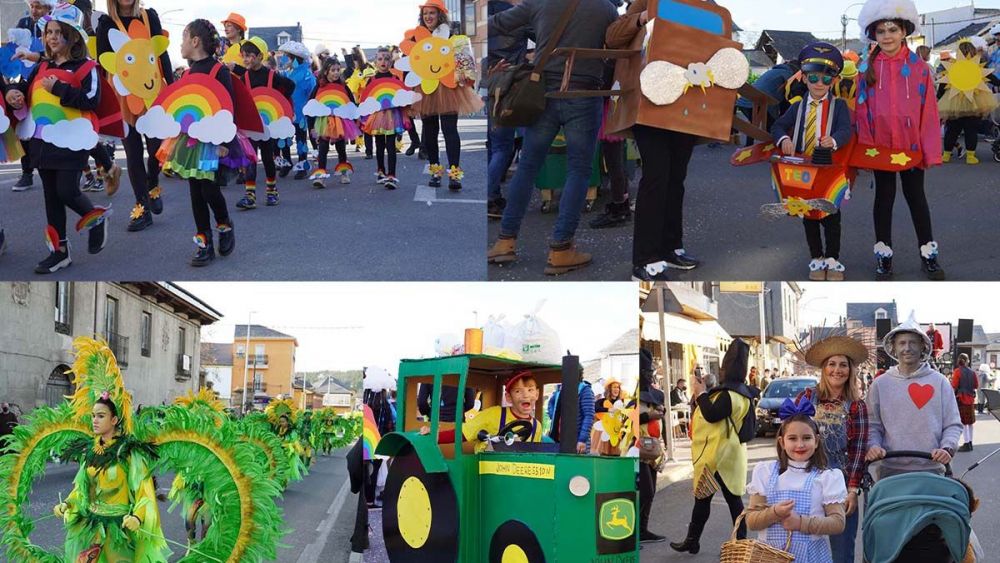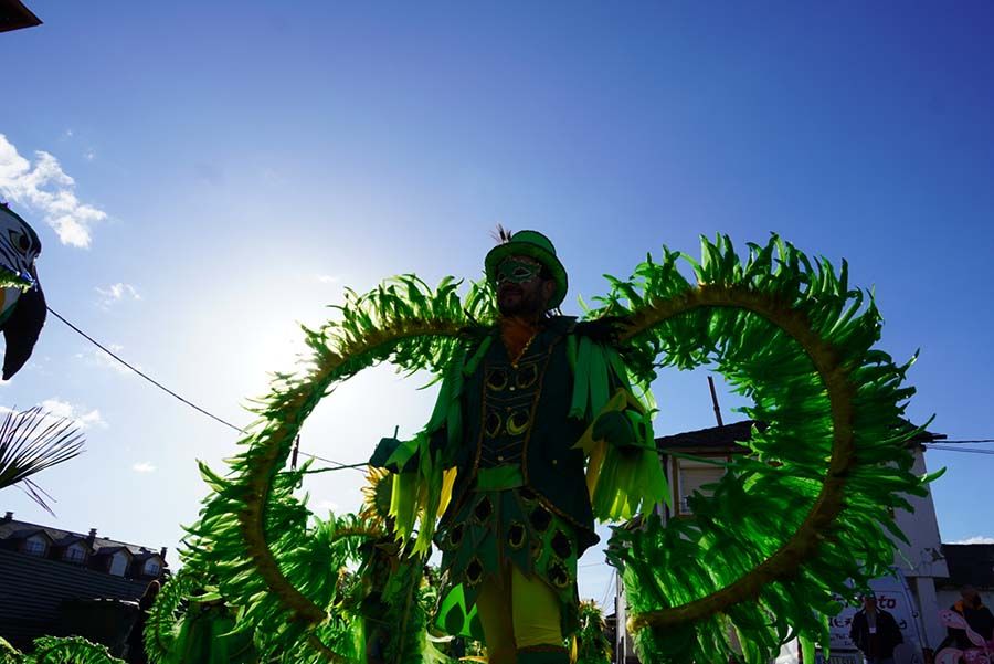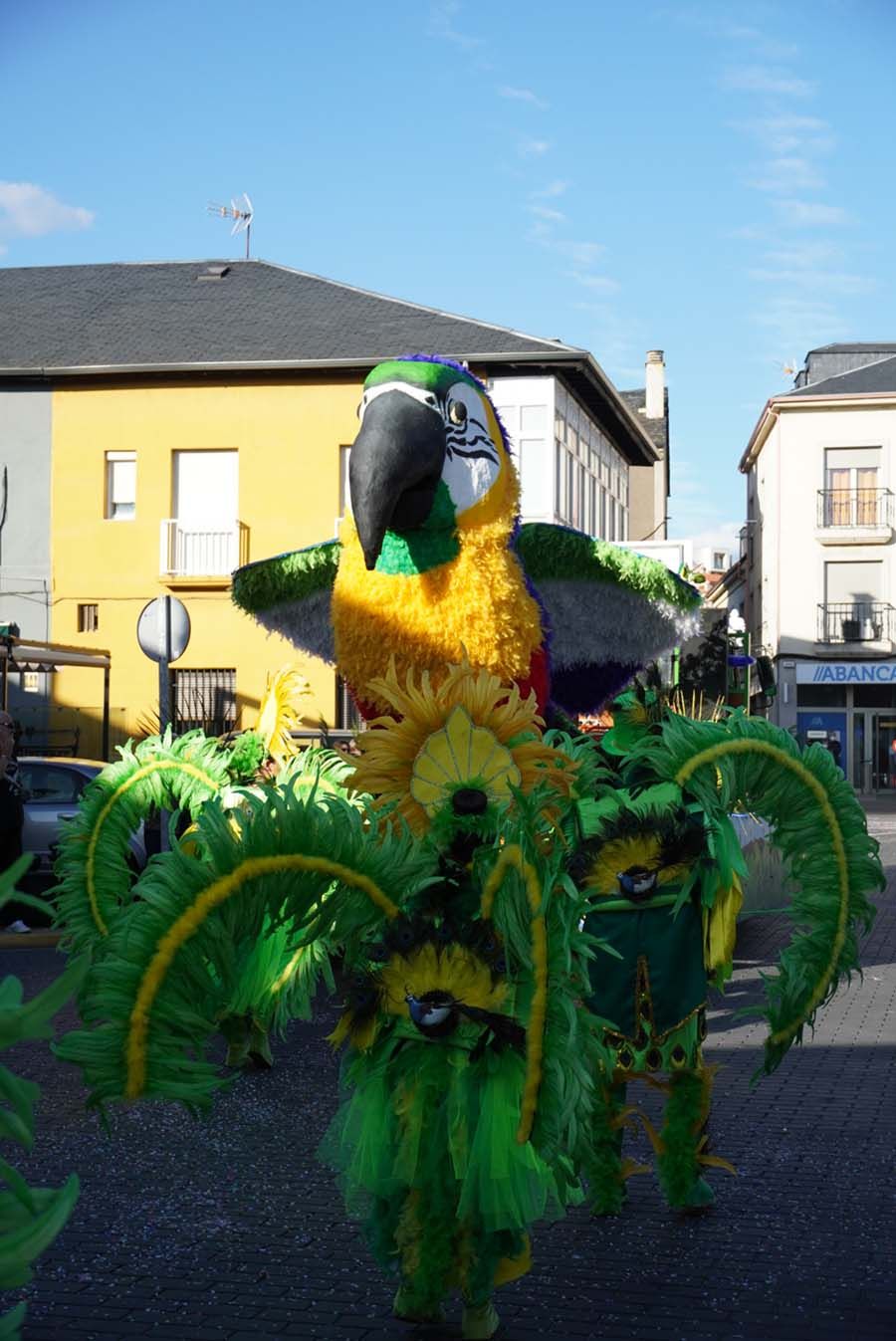 En la gran variedad de disfraces se podía observar desde el hombre de hojalata y sus amigos, hasta mariposas llenas de color que nos anticipaban el plato fuerte del día: el carnaval de Brasil llenó de verde, plumas y sambas la localidad de Camponaraya, la cual recorrieron acompañados por un loro gigante que presidía su carroza.