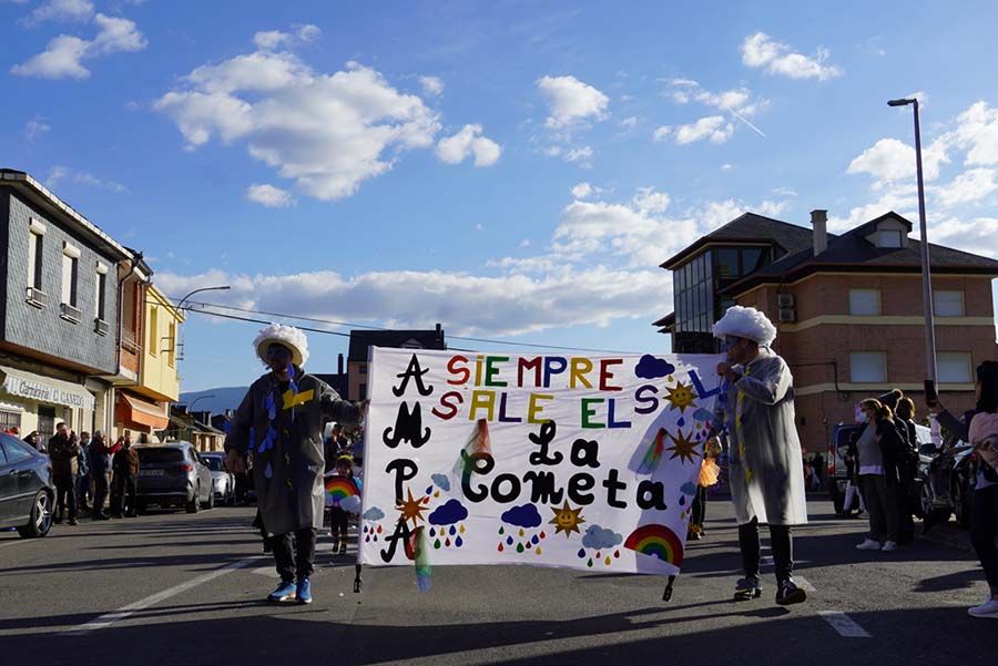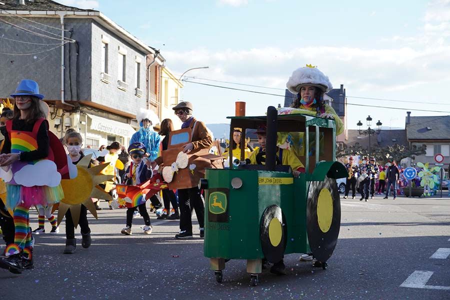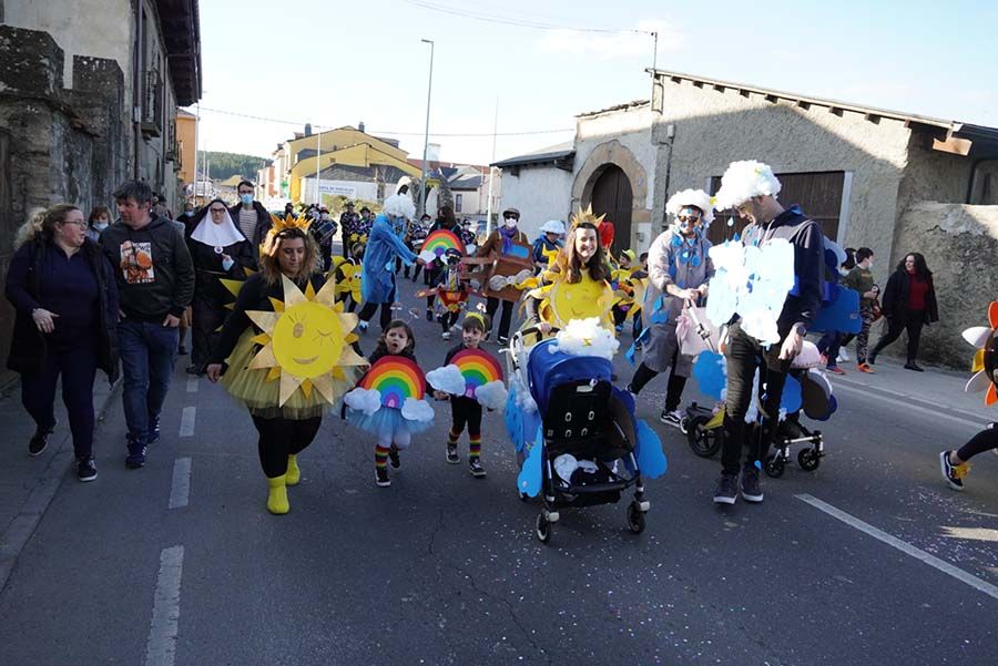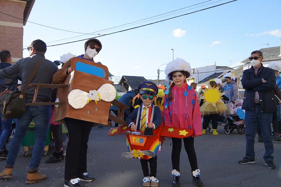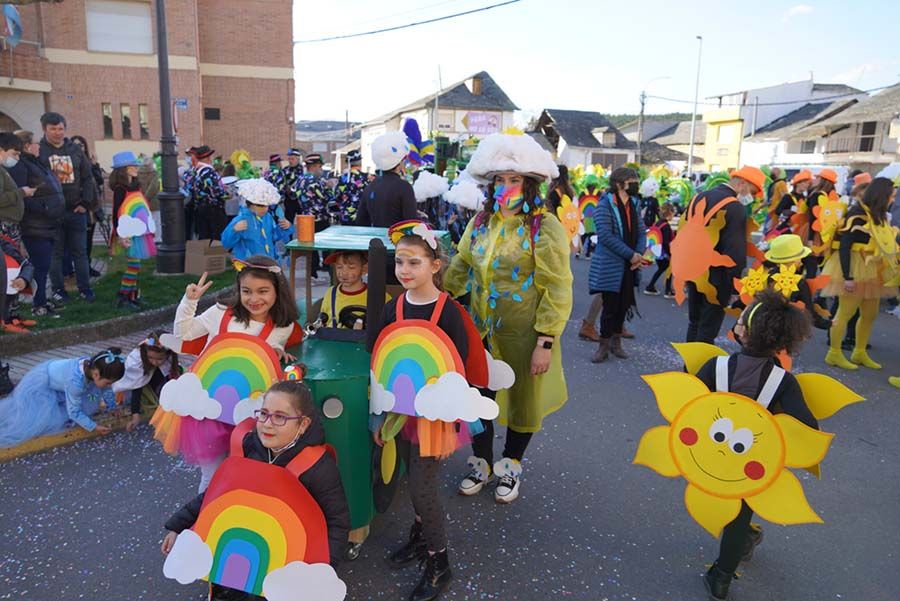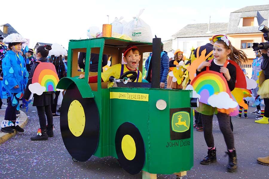 En la gran variedad de disfraces se podía observar desde el hombre de hojalata y sus amigos, hasta mariposas llenas de color que nos anticipaban el plato fuerte del día: el carnaval de Brasil llenó de verde, plumas y sambas la localidad de Camponaraya, la cual recorrieron acompañados por un loro gigante que presidía su carroza.