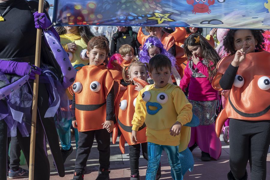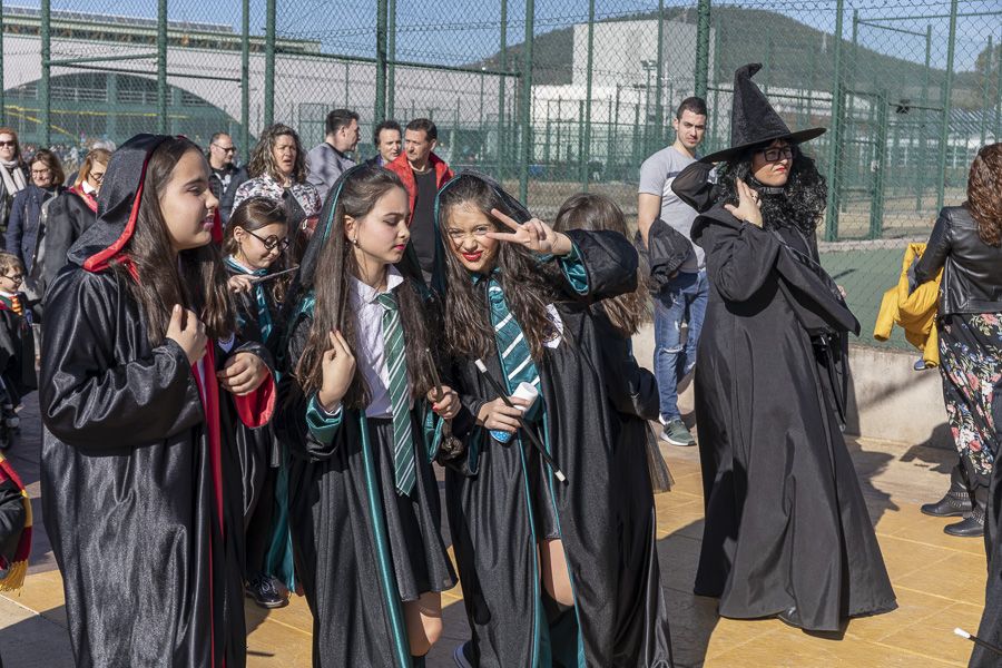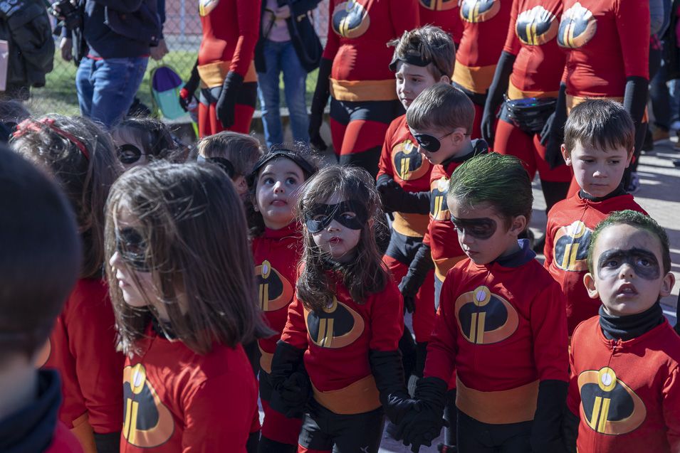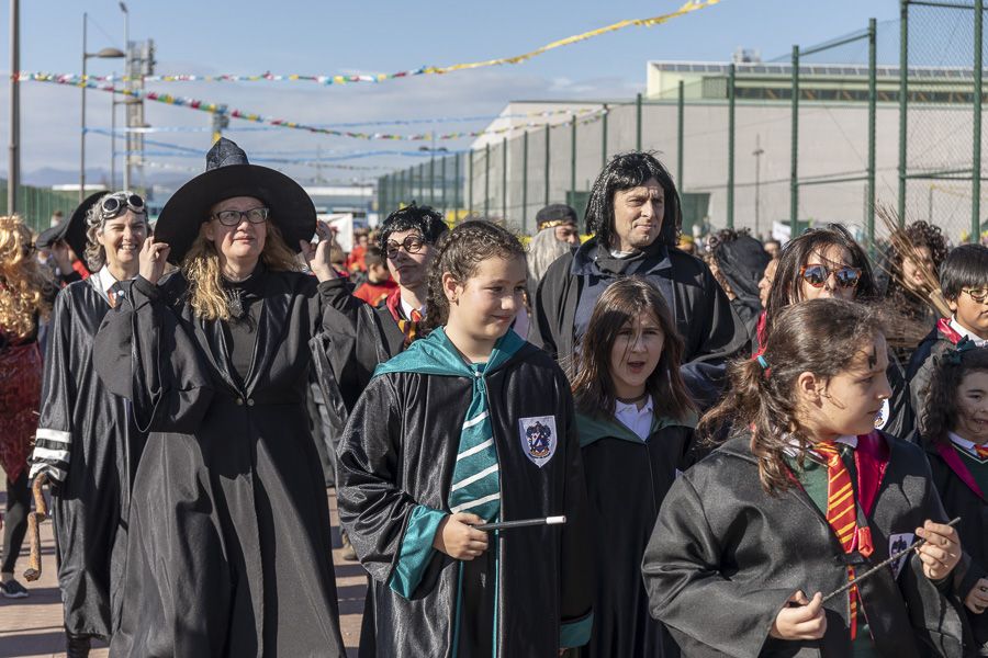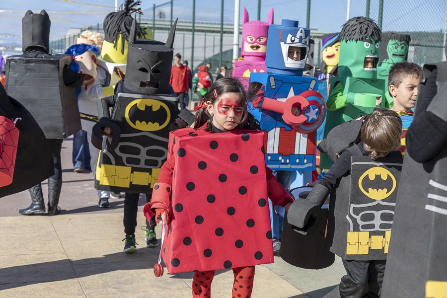 De los 'Increíbles', rockeros de los años 50, héroes de Lego, embajadores del mundo marino, integrantes del circo, damas de comienzos del pasado siglo, animadoras más propias de esta generación, globos también conducidos por los antiguos vigilantes de los cuelos, pitufos, abejas o botes de pintura con los que dar colorido al desfile... Fueron algunas de las propuestas del carnaval infantil de los colegios de Ponferrada.  Incluso se colaron representantes del Colegio Hogwarts.