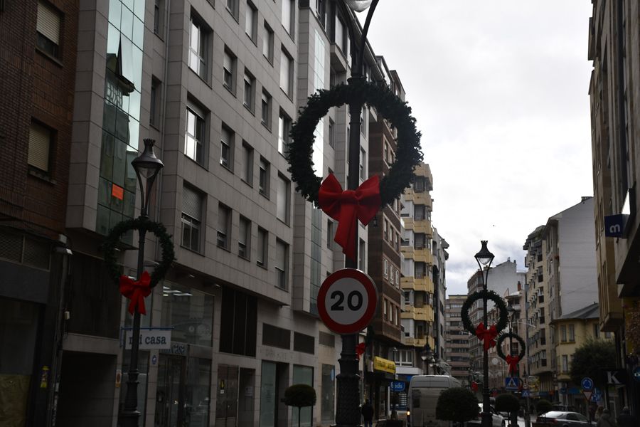 Las coronas de Navidad que arropan las farolas del centro son obra de la floristería ponferradina Arantxa Espadas.