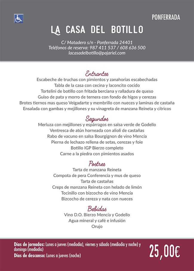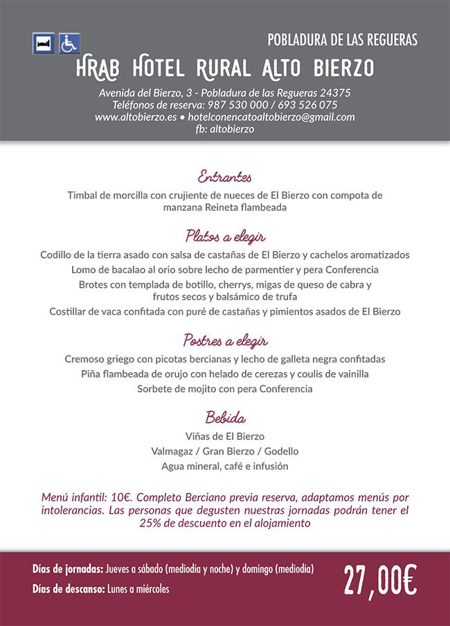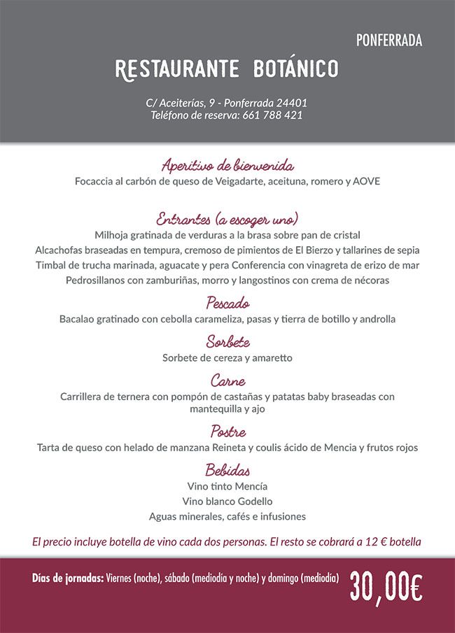 Treinta y seis restaurantes del Bierzo y uno de Valdeorras participarán en esta nueva edición de las jornadas presentada este jueves por el presidente del Consejo Comarcal del Bierzo, Gerardo Álvarez Courel. Todos los menús de las jornadas incluirán los productos de sello de calidad del Bierzo como el botillo, el pimiento, la pera conferencia o la castaña. Los precios de los menús oscilan entre un mínimo de 20 euros y un máximo de 35 euros, siendo el precio medio por menú de 25 euros. Los restaurantes ofrecerán la carta ceñida a las Jornadas Gastronómicas durante los fines de semana, viernes por la noche, sábado al mediodía y por la noche y domingos al mediodía. El resto de la semana será opcional servir estos menús.