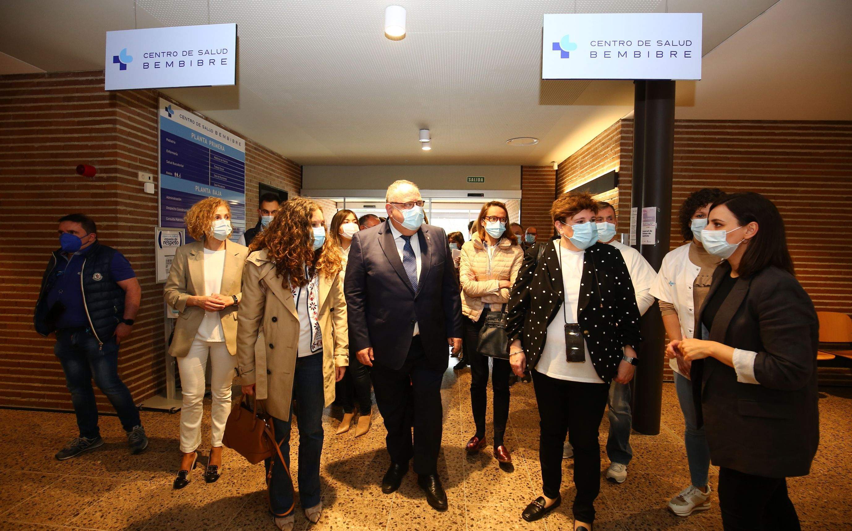 El consejero de Sanidad, Alejandro Vázquez Ramos, junto a la alcaldesa de Bembibre (León), durante su visita al nuevo Centro de Salud de la localidad
