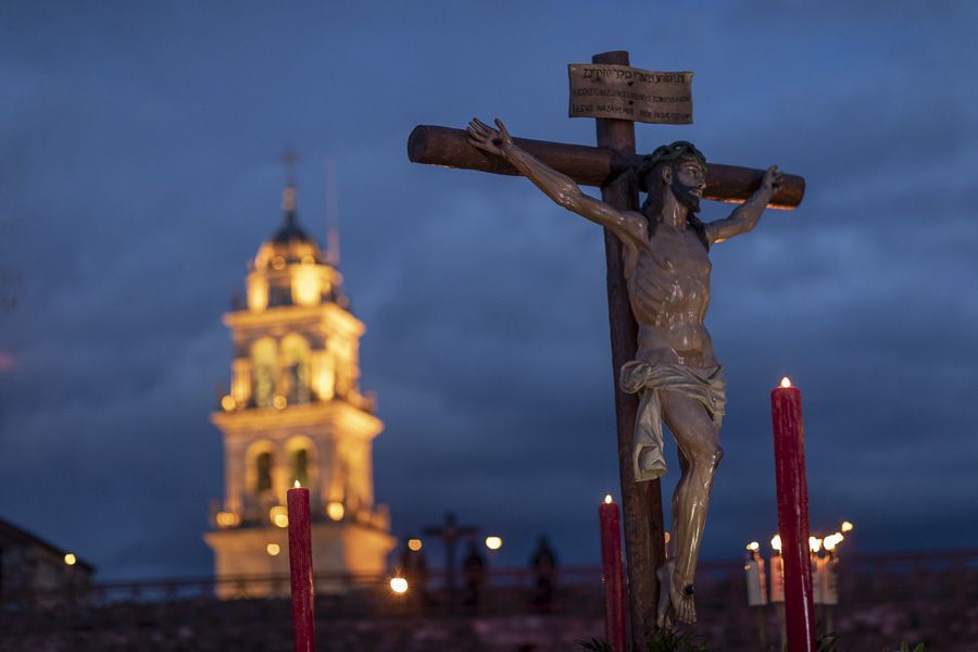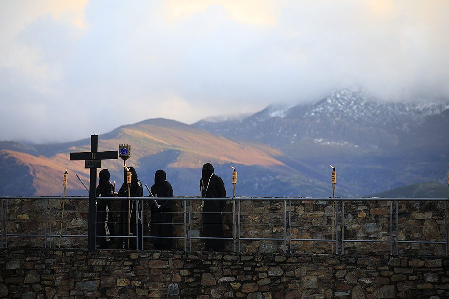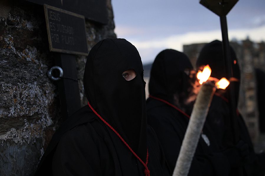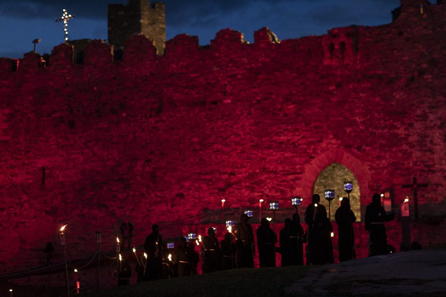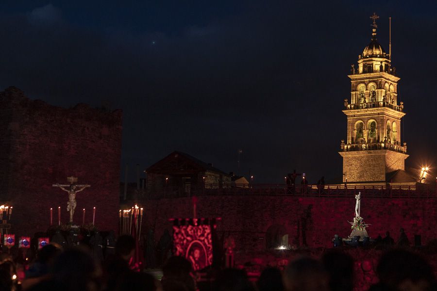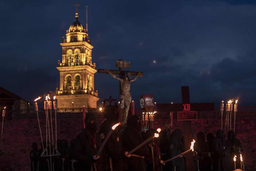 Los cofrades de la Real Hermandad de Jesús Nazareno llevaban todo el lunes mirando al cielo, con la esperanza de que finalmente la lluvia no "aguase" el Via Crucis penitencial en el castillo de los Templarios. Y así ha sido. De nuevo la lluvia ha vuelto a respetar al Cristo de la Esperanza y al Cristo de la Fortaleza en su recorrido desde la iglesia de San Andrés, para entrar en el castillo templario con la caída del crepúsculo y seguir las 14 estaciones de penitencia que marcan cada uno de los momentos de la Pasión de Cristo, acompañados por las voces de la Ronda de El Salvador de Toral de Merayo. Como novedad este año, se han vuelto a utilizar las antiguas cruces de madera para marcar cada una de esas estaciones en el patio de Armas.