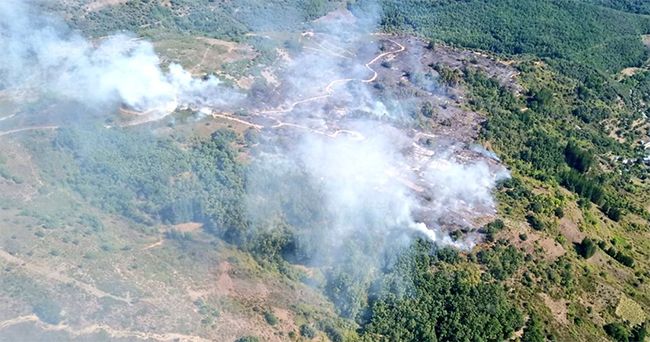 Fotos de la brigada Brif TabuyoLa alerta por un incendio en el municipio berciano de Toreno se activó en el mediodía de este lunes. El incendio comenzó a las 13.58 horas, cuando un matorral comenzó a arder de forma intencionada, según desvela el parte de incendios de la Junta. Un total de 5 helicópteros, de la Junta de Castilla y León y de Tabuyo, trabajaron desde el inicio de la tarde para apagar el fuego, según informan fuentes de Medio Ambiente de la Junta a este diario.