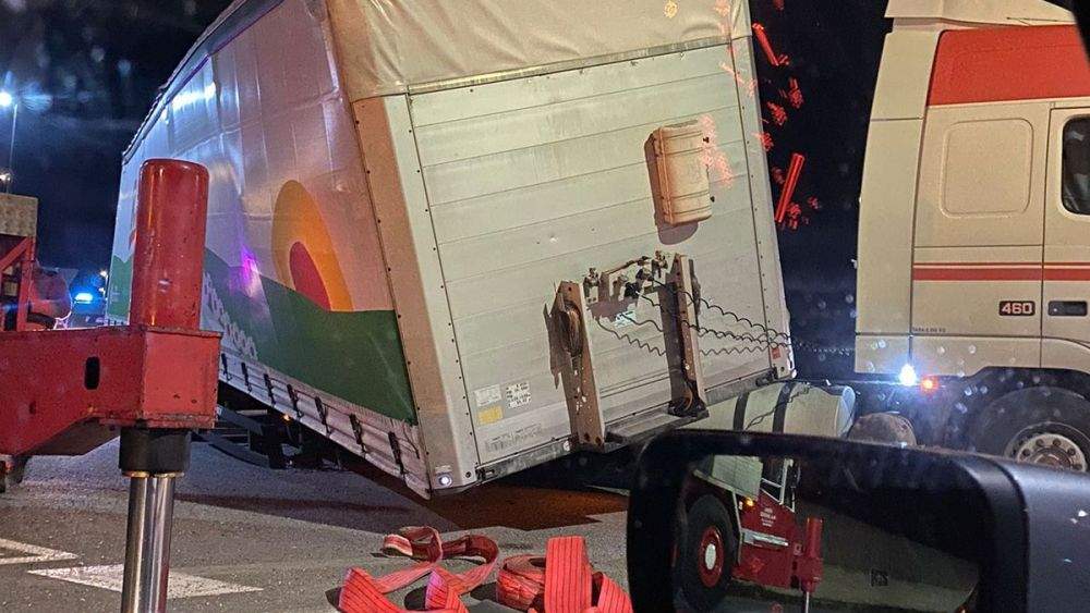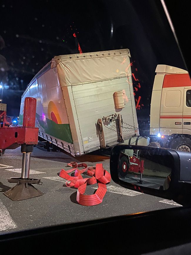 El desprendimiento del remolque de un camión cortó la circulación en el acceso a la A-6 desde Camponaraya