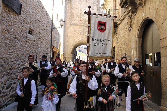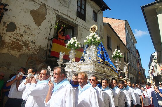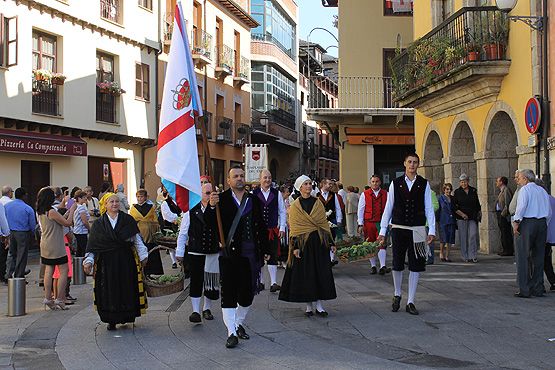 Desfile de trajes regionales, de la bandera y la ofrenda floral a la Virgen de la Encina. Este año con protagonismo para el municipio de Sobrado, que presentó sus castañas y productos de la huerta berciana a la 'morenica'