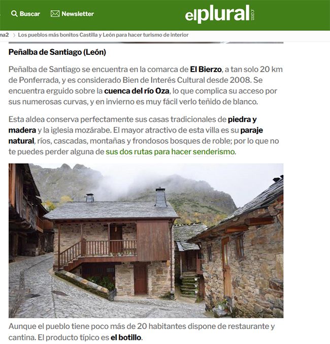 Los diarios nacionales siguen 'rindiéndose' a las maravillas del Bierzo. En este caso ha sido el Diario El Plural el que ha destacado el atractivo Peñalba de Santiago como uno de los pueblos más bonitos de Castilla y León.