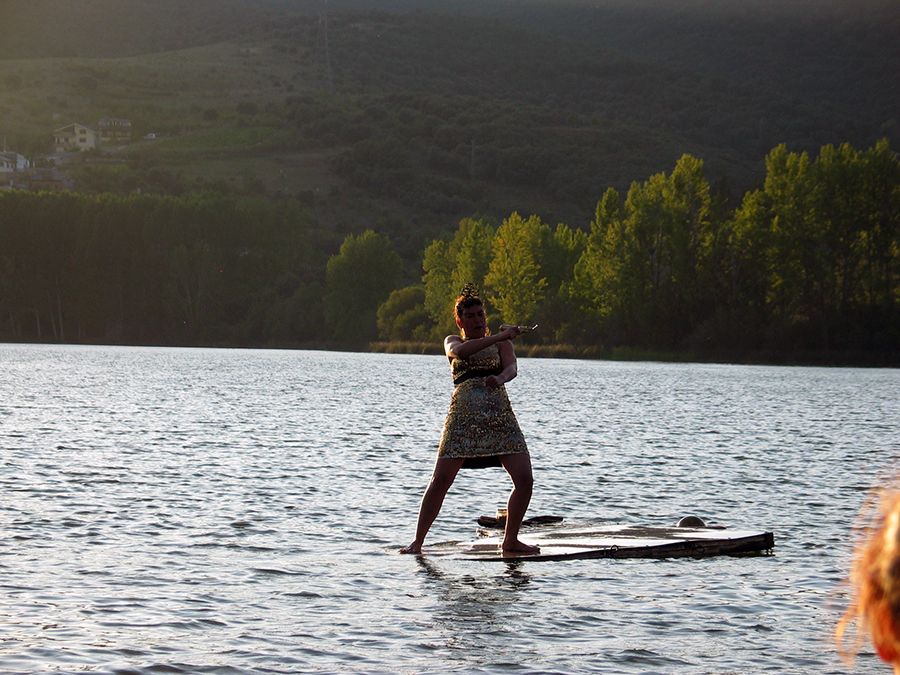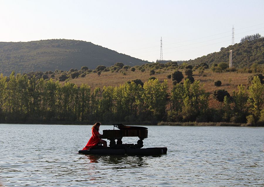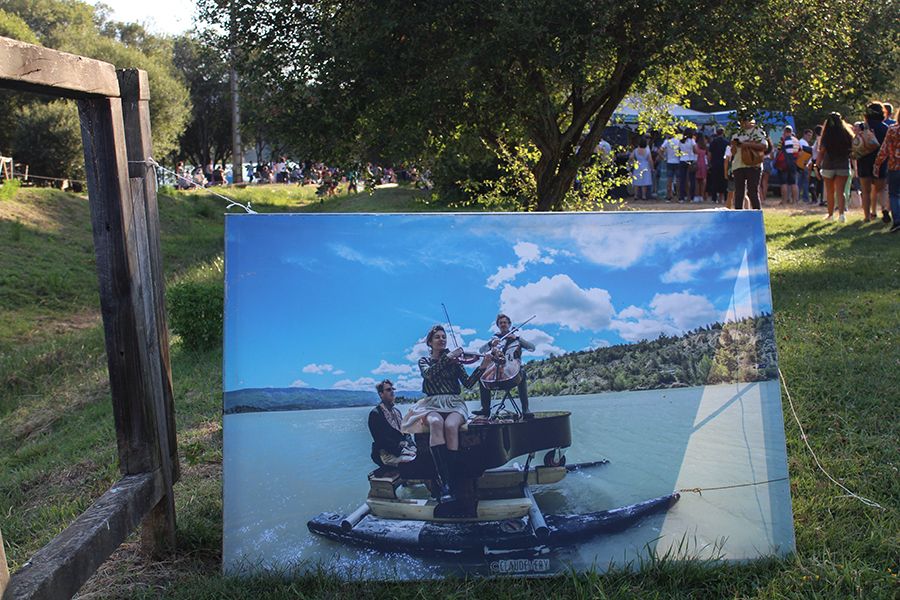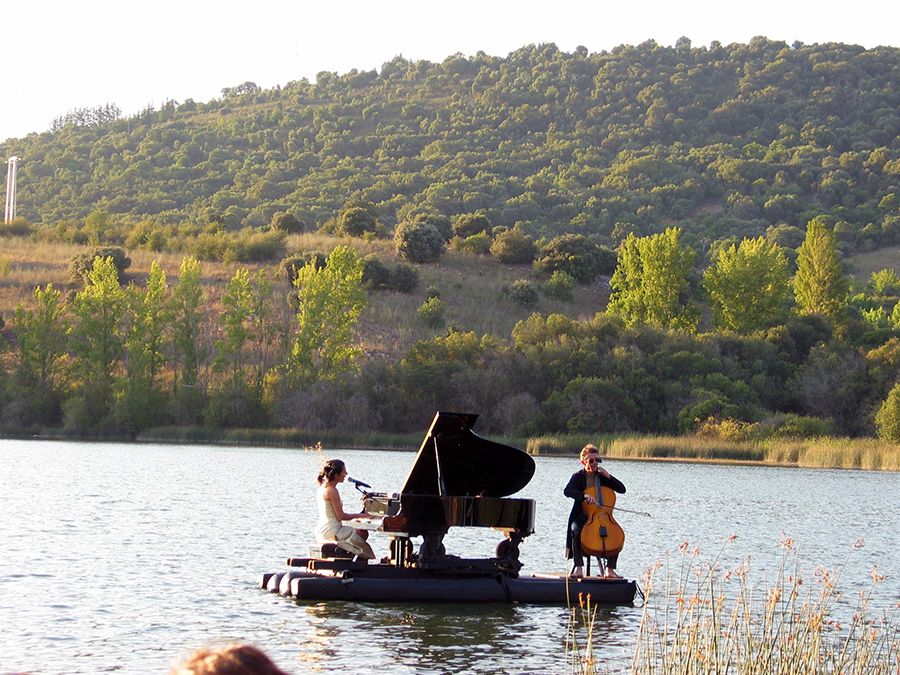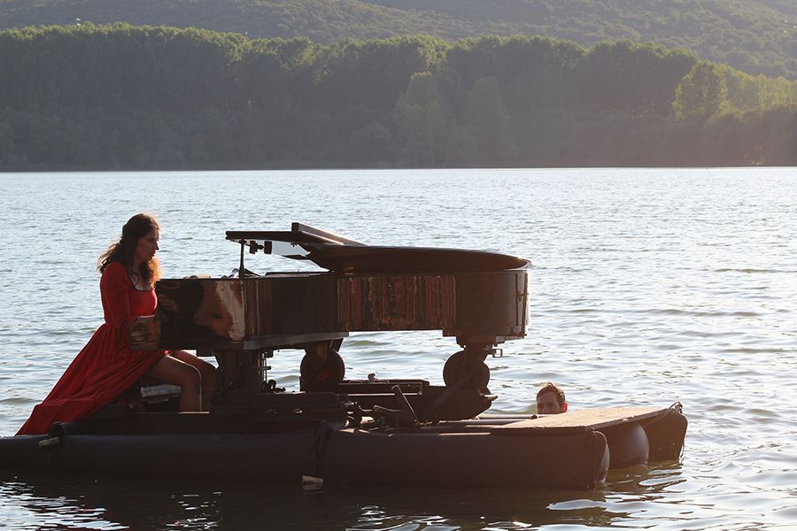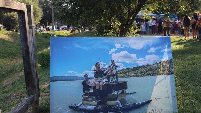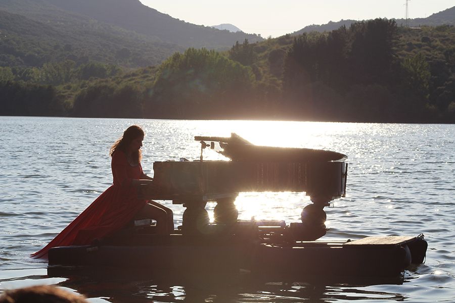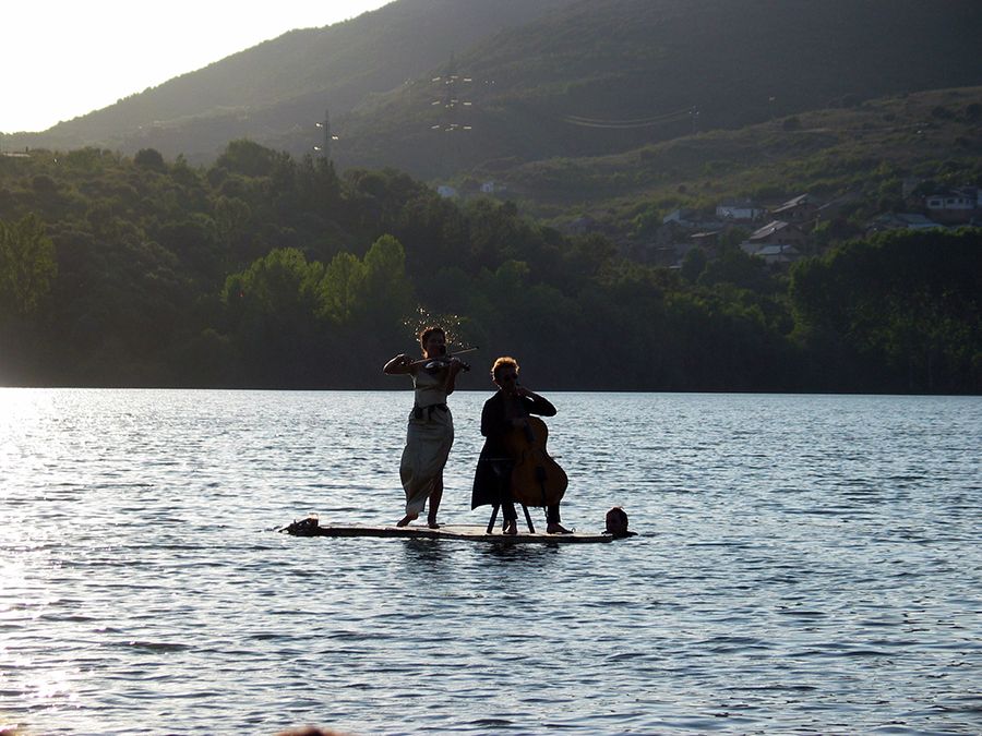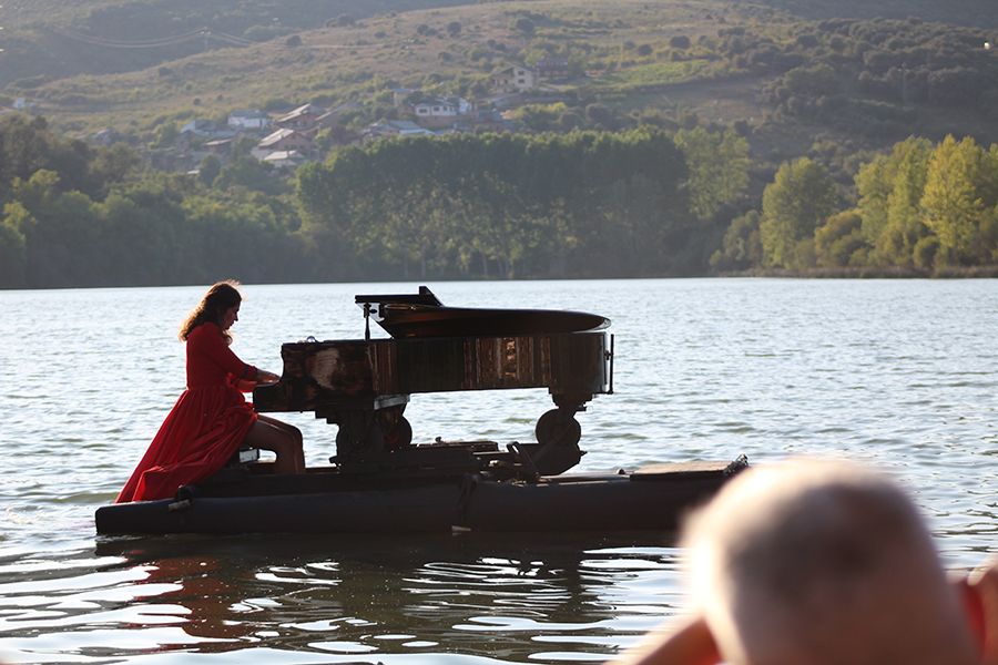El espectáculo 'Le Piano du Lac' aterrizó en el lago del municipio berciano de Carucedo, este jueves para dejar boquiabiertos a los allí presentes. El grupo musical que realiza este espectáculo por Europa realizó un número inspirado en el viaje y los encuentros que en él se producen. Esta experiencia en la que la cantante, pianista y violinista Delphine Coutant, el violonchelista Daniel Trutet y la bailarina Mónica Cofiño, compartieron con el público la magia de tocar y bailar suspendidos en el agua, dejó un buen sabor de boca a los bercianos que probablemente perdure en el tiempo.