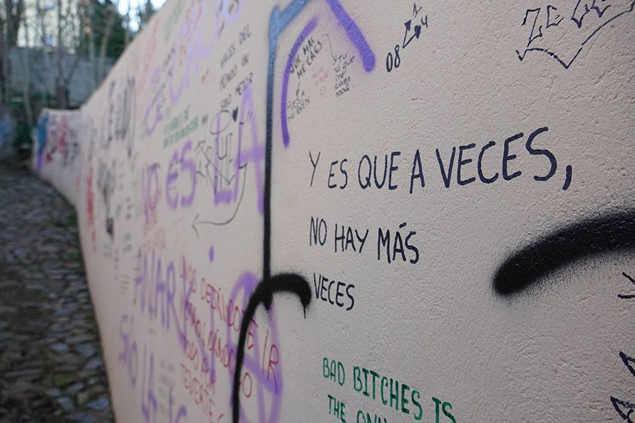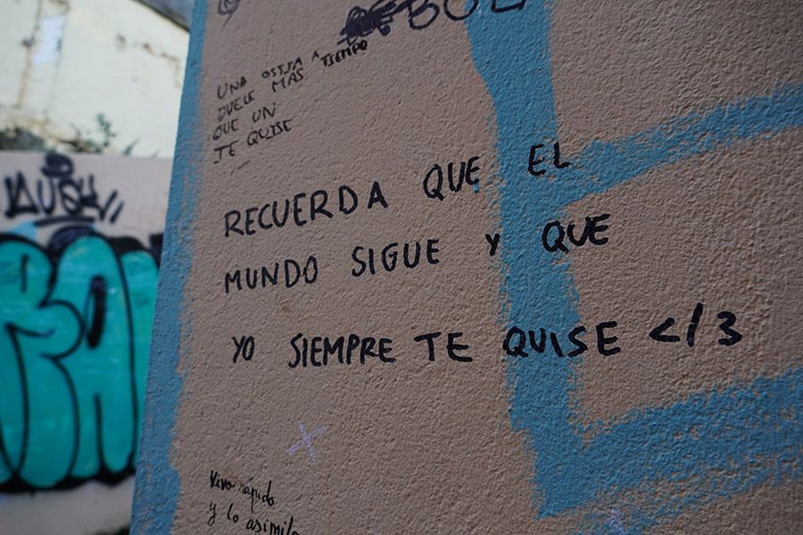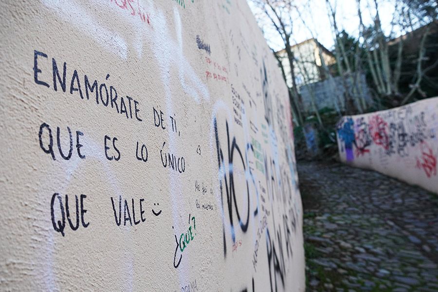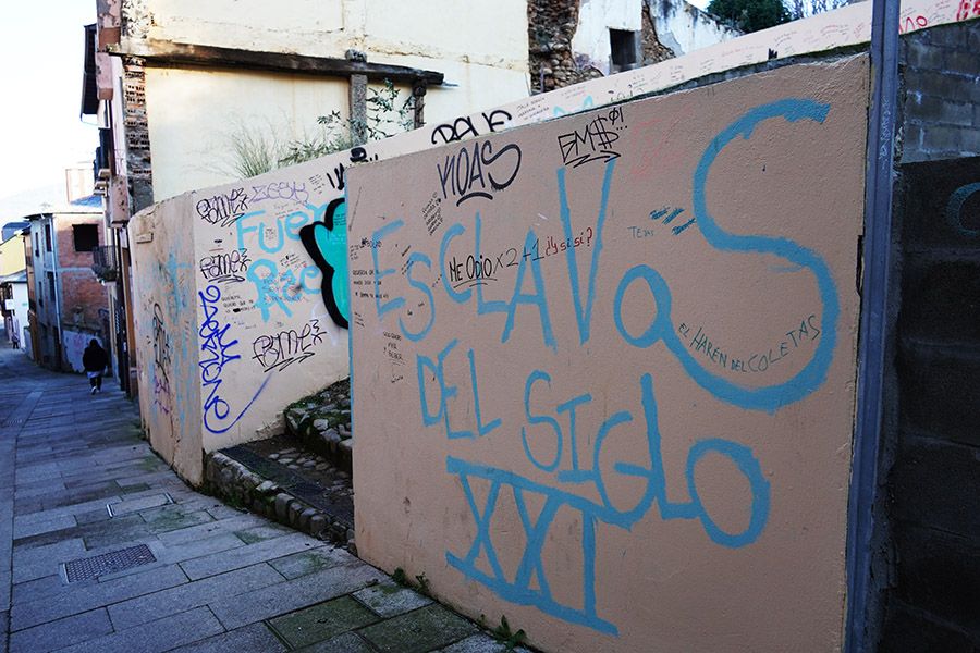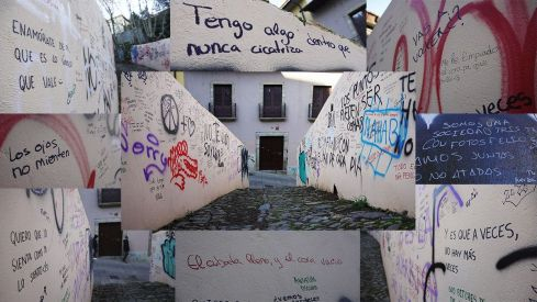 En estos términos, a medio camino de la calle, se encuentran varios muros que albergan frases, escrita a mano, como "Y es que a veces no hay más veces", "Somos una sociedad triste con fotos felices", "Volamos juntas pero no atadas", "El cubata lleno y el cora vacío", "los ojos no mienten" o "Esclavos del siglo XXI", entre muchas otras. Así, parece ser que la complicada situación urbana en la que se encuentra la calle del Rañadero, ha sido el contexto perfecto para 'destapar el rotulador' y convertirla en la mismísima entrada a la casa de Romeo y Julieta en Verona. Aunque la cara b es la de siempre.