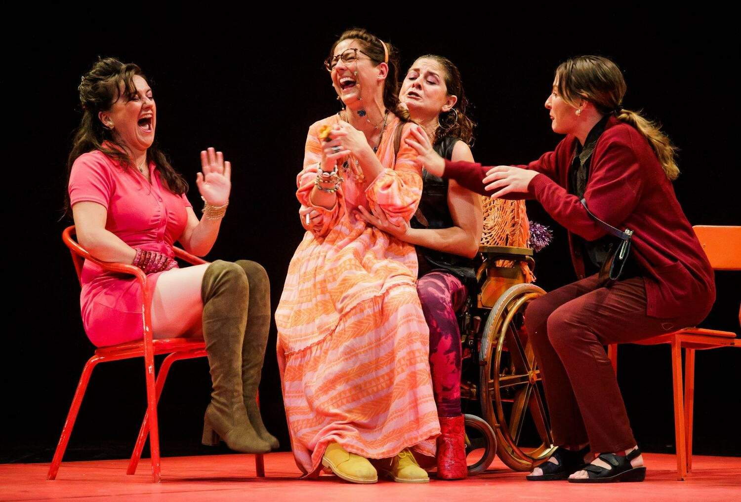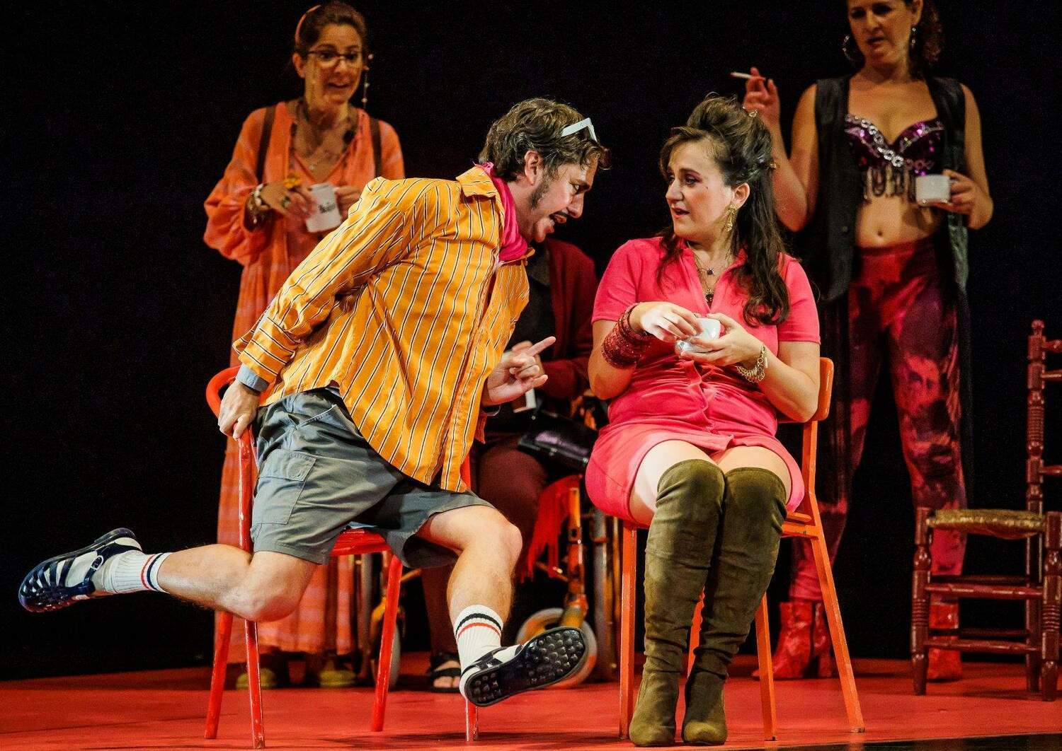 Sobre un texto de Ana López Segovia que interpretan, además de la autora, Alejandra López, Teresa Quintero, Rocío Segovia, José Troncoso y Fernando Cueto, la obra mantiene el mundo creativo de esta formación andaluza donde “siempre ha existido una absoluta fascinación por la amoralidad, encarnada en mujeres y hombres que encierran dentro de sí un mundo interior donde los límites entre lo correcto y lo transgresor se tambalean, en donde se cuestiona lo ético y el ansia de libertad arrasa salvajemente con todo, incluso con los valores más elevados e intocables de nuestra cultura”. Dentro de esta fascinación “nuestra mirada se ha dirigido sobre todo a las mujeres, especialmente a las mujeres de nuestra vida, de nuestro barrio, a las que hemos visto sobrellevar la frustración y los dolores a golpes de humor y pastillas”.