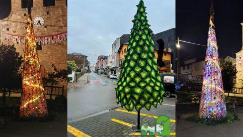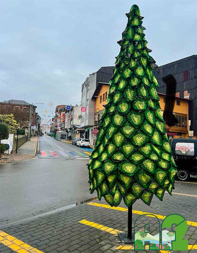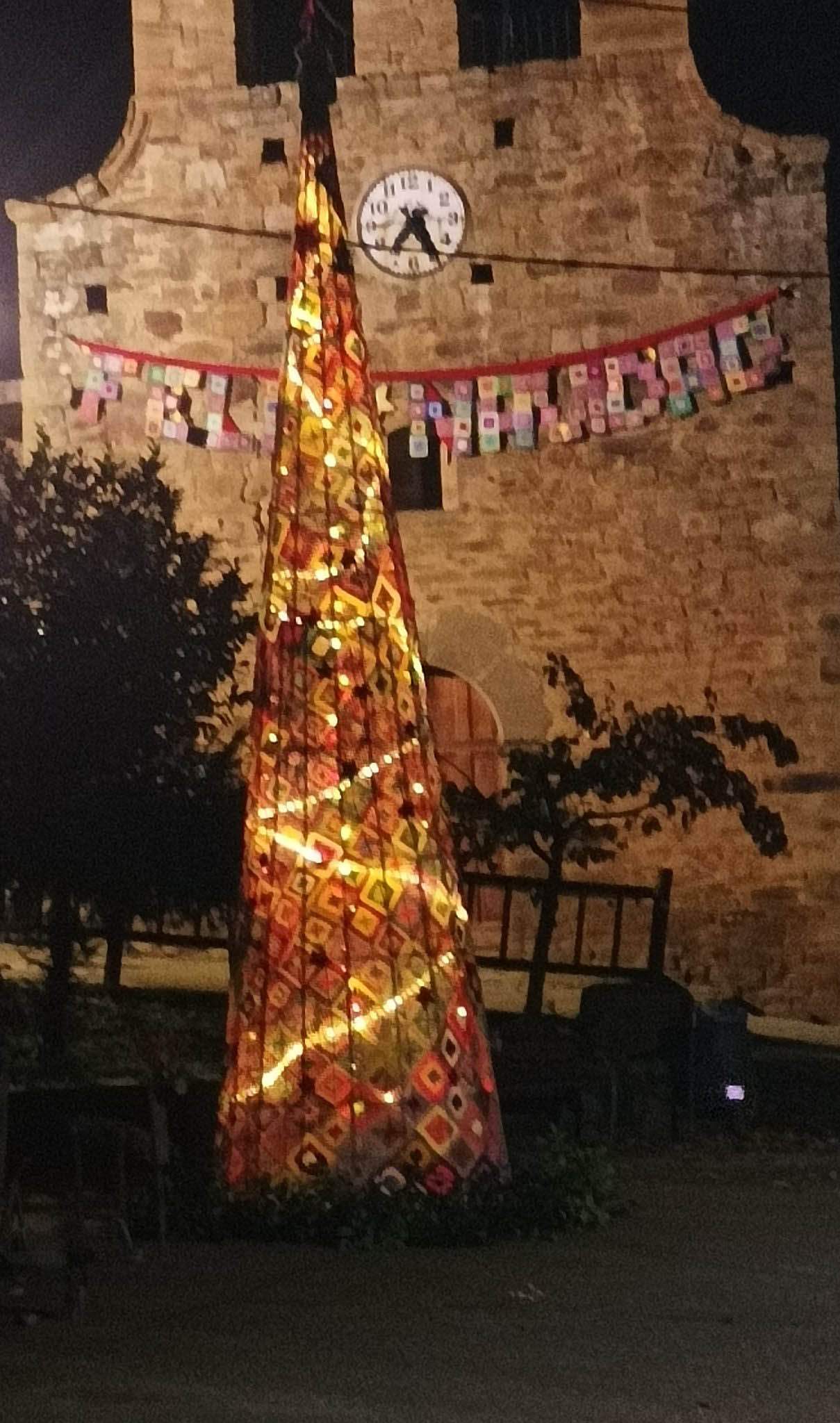 Vuelve a lucir el árbol de Navidad tejido a ganchillo por las mujeres de #QuintanadeFuseros . Hoy se ha vuelto a iluminar.. @Infobierzo pic.twitter.com/XtCSmkmSls