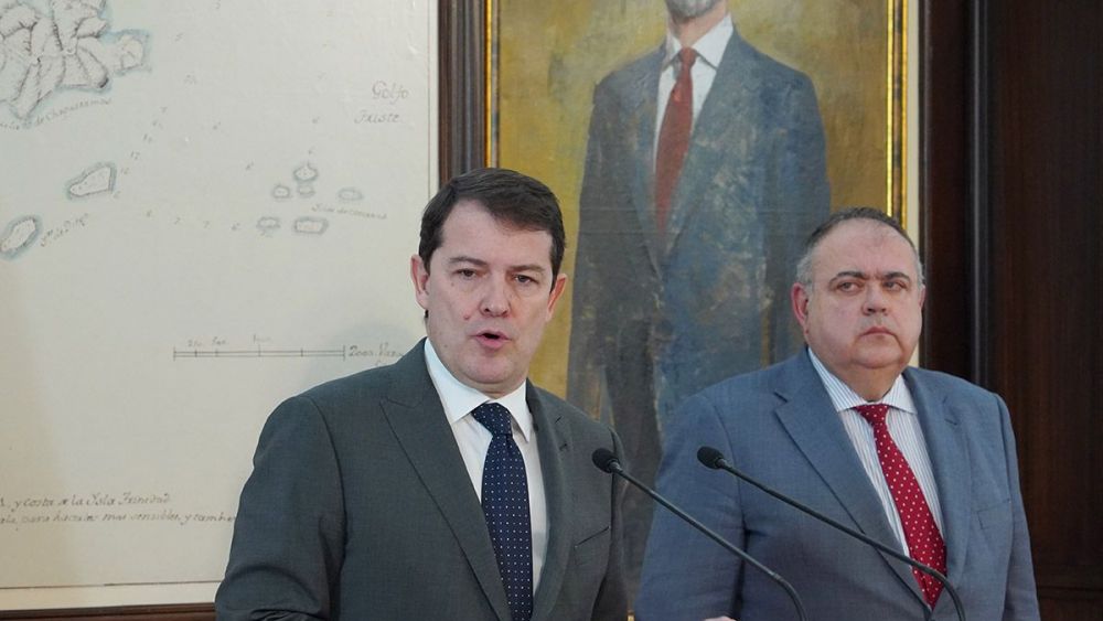 Miriam Chacón / ICAL. Declaración institucional del presidente de la Junta de Castilla y León Alfonso Fernández Mañueco junto al consejero de Sanidad Alejandro Vázquez