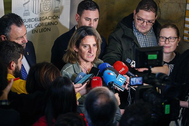 La ministra de Transición Ecológica, Teresa Ribera, atiende a los medios de comunicación tras la reunión con UGT y CCOO para abordar la Mesa por un Futuro para LeónLa vicepresidenta para la Transición Energética y el Reto Demográfico, Teresa Ribera, visitó León este miércoles para reunirse con UGT y CCOO. El objetivo era establecer los mecanismos de articulación y constitución de una Mesa específica para abordar un Plan de Reindustrialización, Industrialización e Infraestructuras para la provincia, según se lo comunicaron hoy a los sindicatos desde el Gobierno de España.