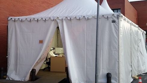 Además, el centro hospitalario berciano ha retirado la carpa de triaje instalada en la puerta de urgencias el pasado 12 de marzo con el objetivo de separar las posibles entradas de pacientes por Coronavirus del resto de contingencias.