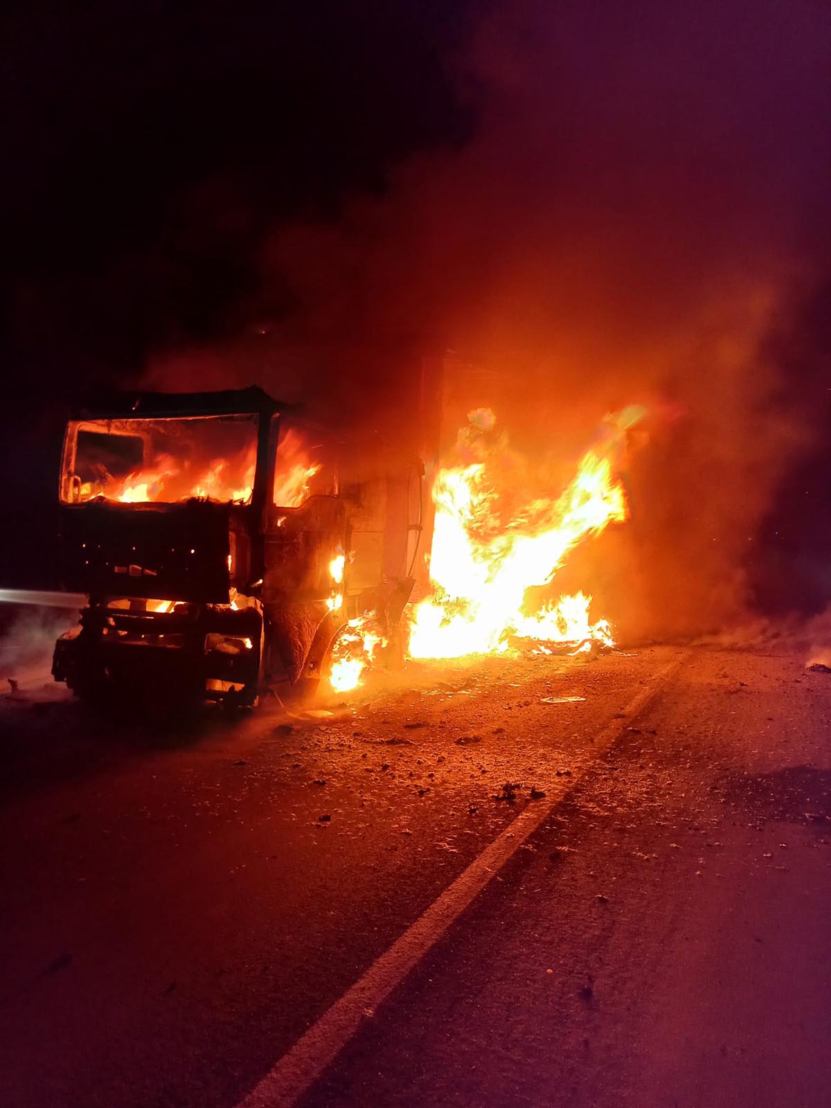 El incendio resultó "un tanto complicado de extinguir", reconocían los Bomberos de León que acudieron al lugar de los hechos, dada la cantidad de diferente combustible que trasportaba el vehículo accidentado, y las labores se alargaron durante varias horas.
