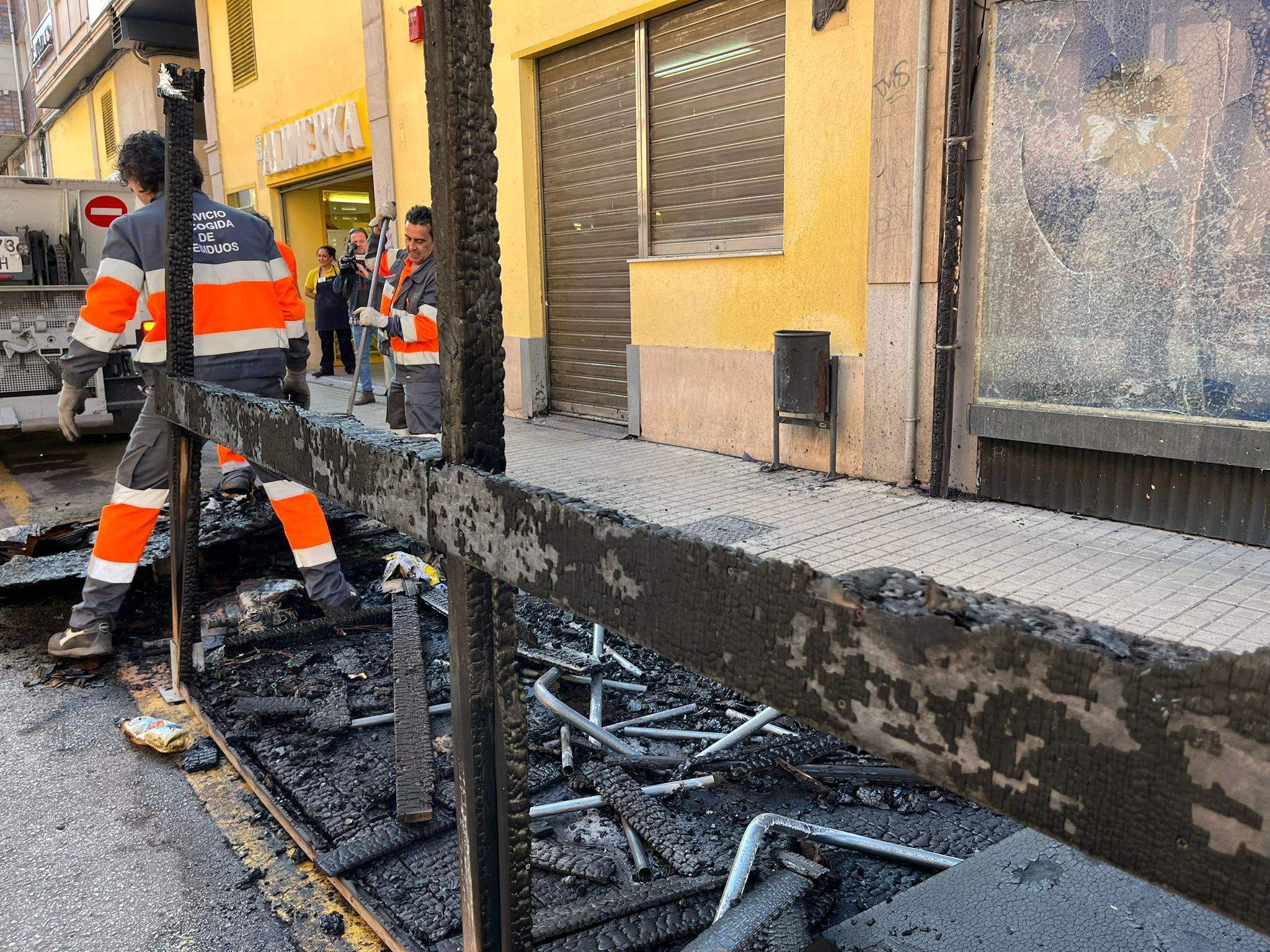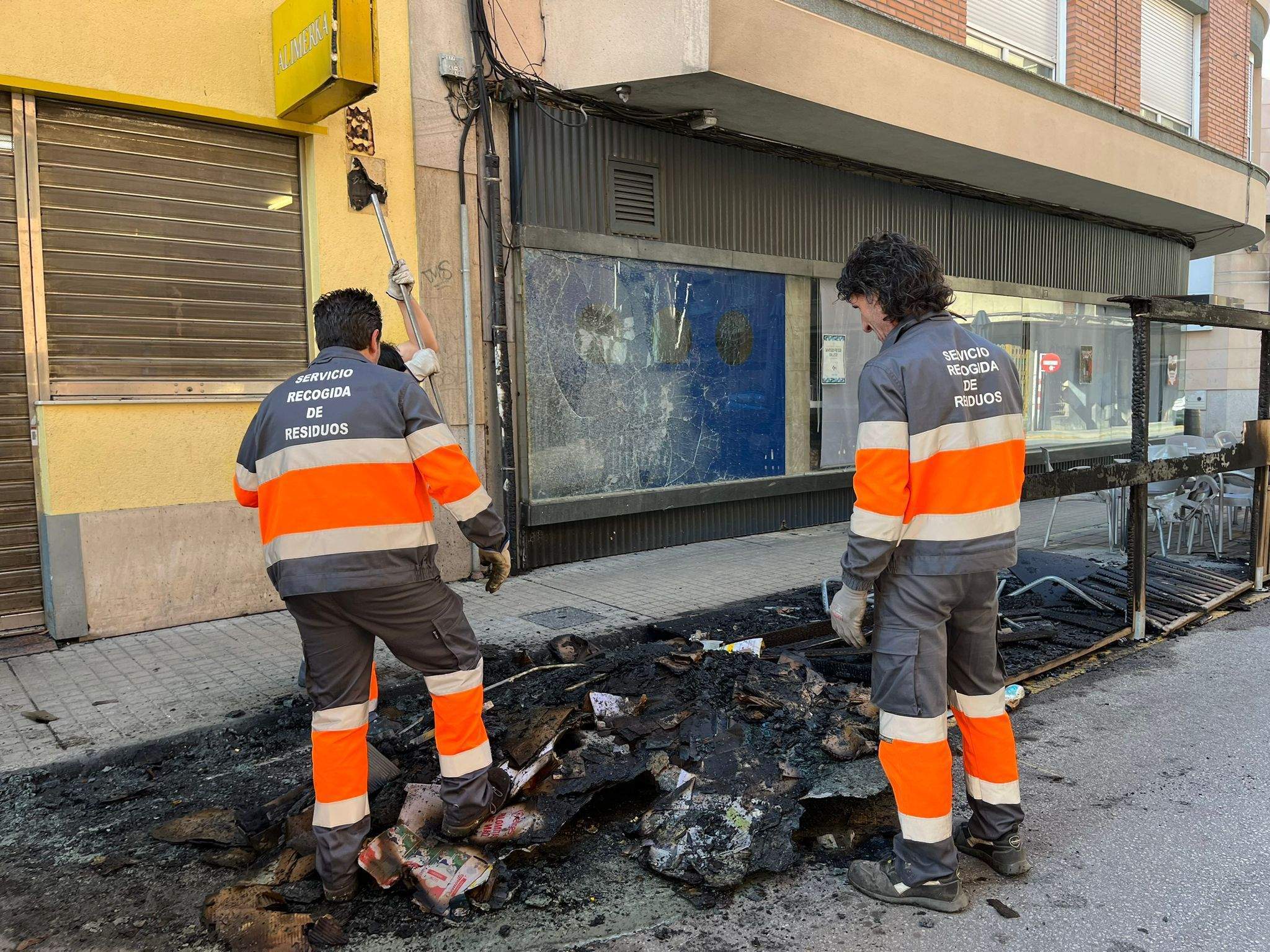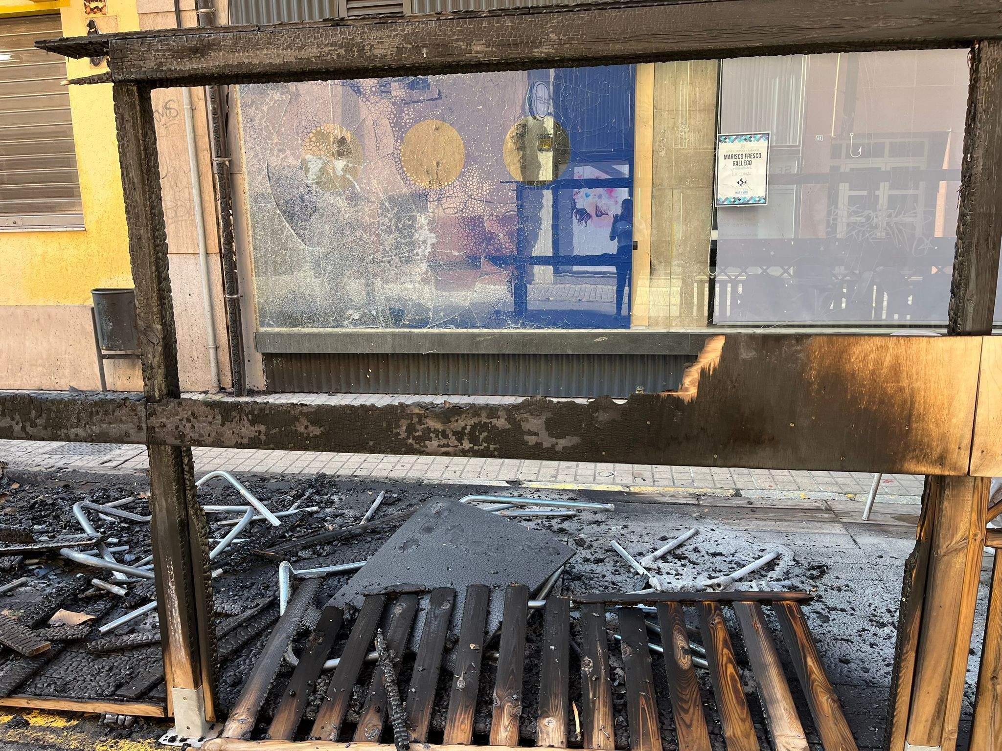 Un incendio "intencionado" en un contenedor ha dejado en "parcialmente destruída" la terraza del bar La Lonja, en la zona centro de Ponferrada, que también terminó afectando a una cristalera.