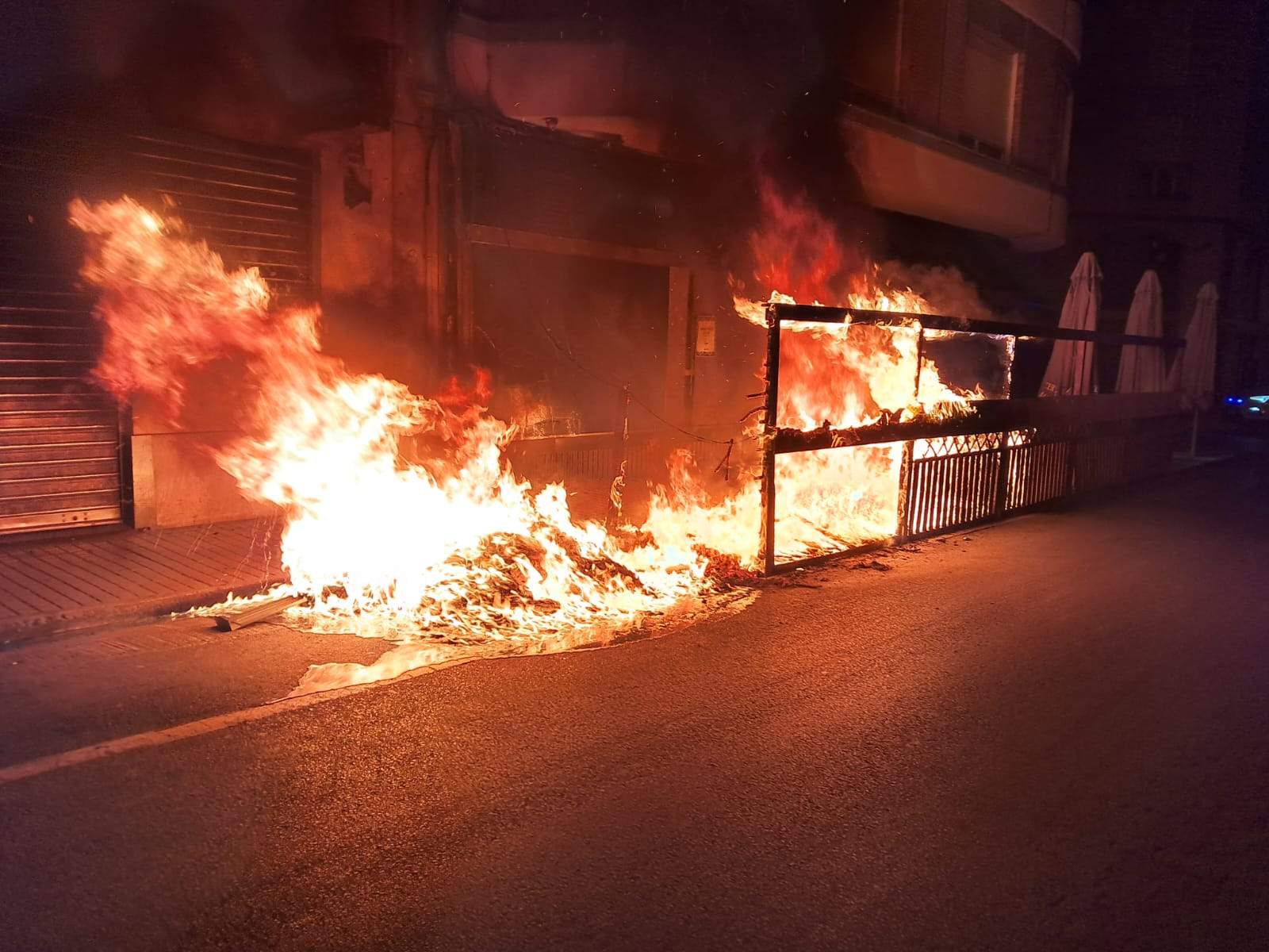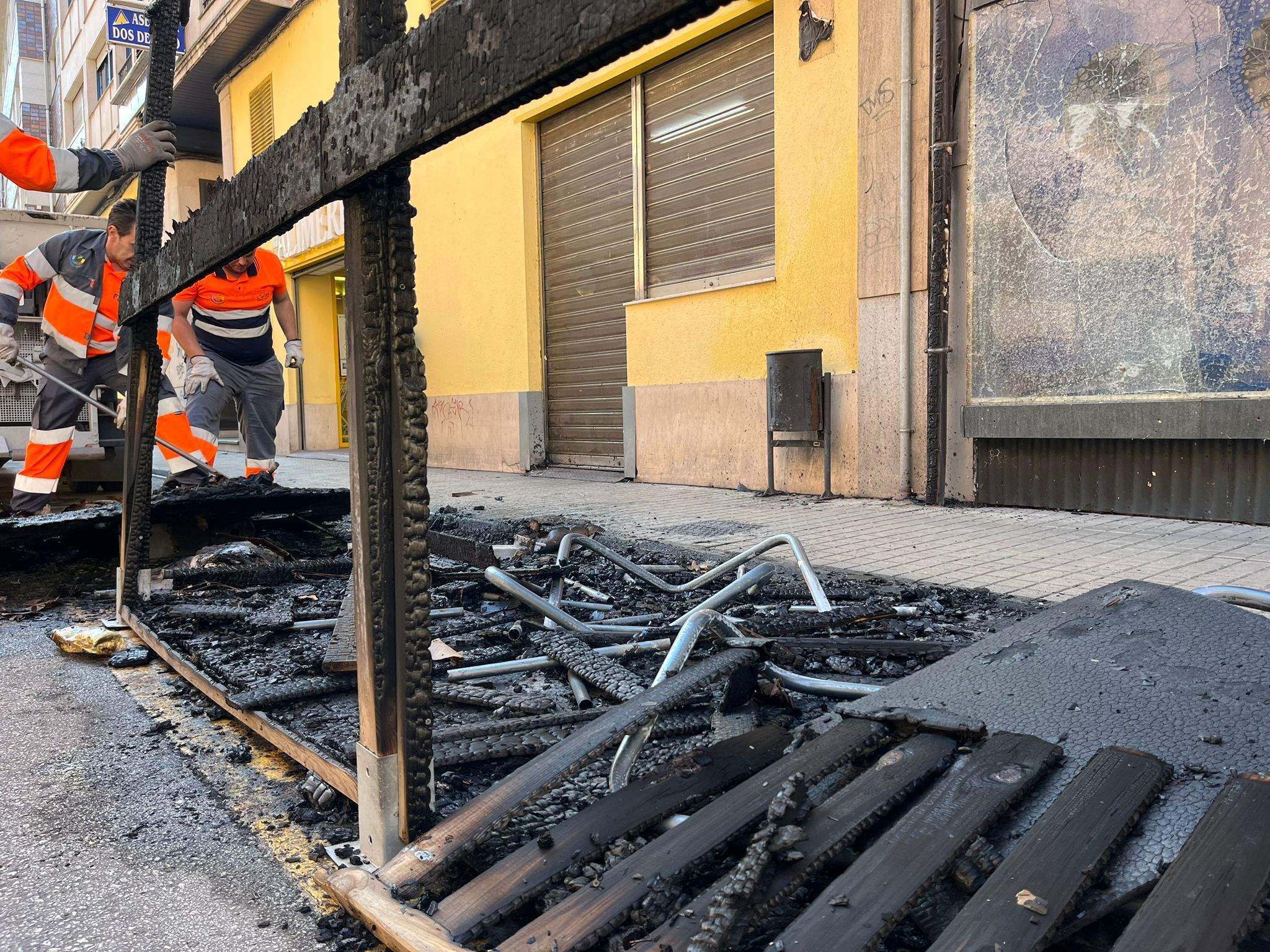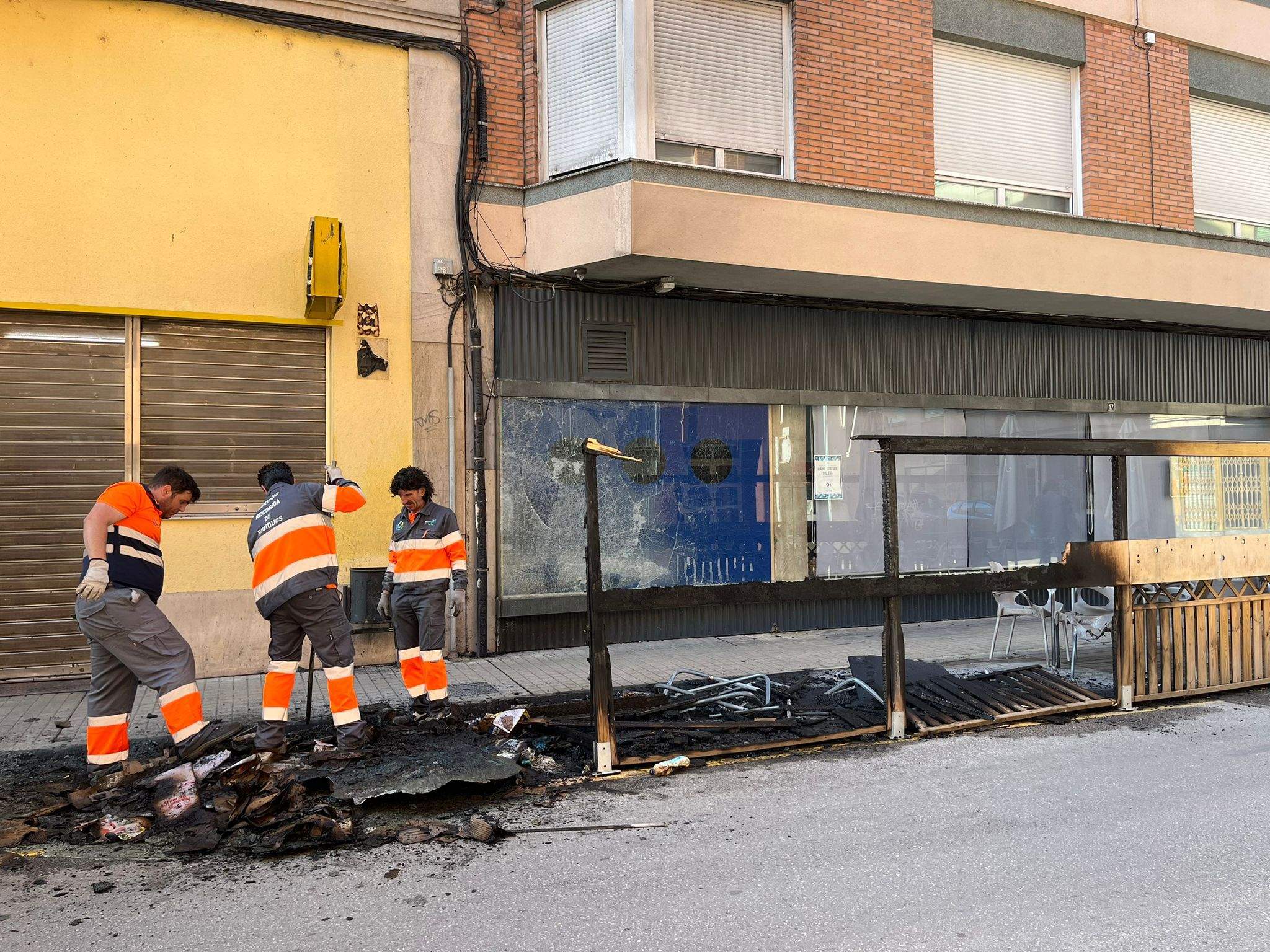 Un incendio "intencionado" en un contenedor ha dejado en "parcialmente destruída" la terraza del bar La Lonja, en la zona centro de Ponferrada, que también terminó afectando a una cristalera.