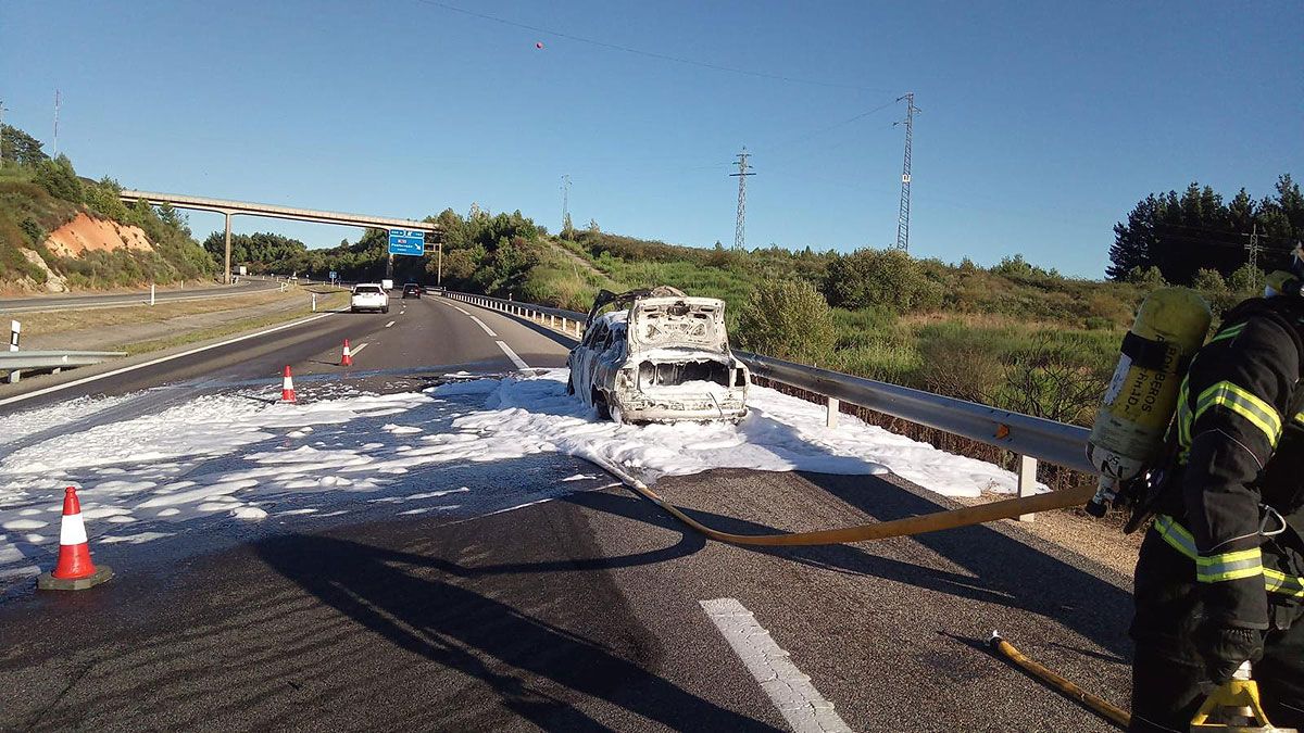 El coche, que circulaba dirección Madrid, empezó a arder y resultó totalmente calcinado. Motivó además un incendio que se extendió a una zona de matorral.