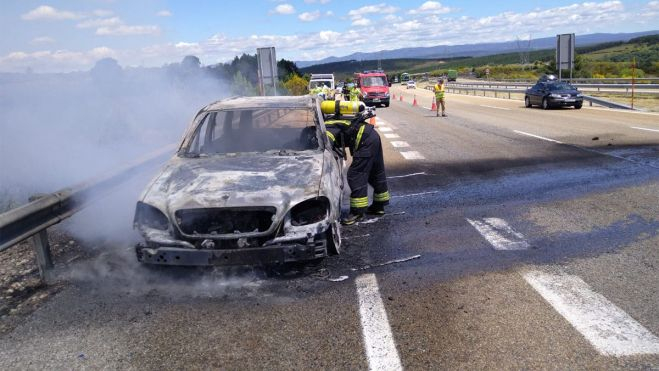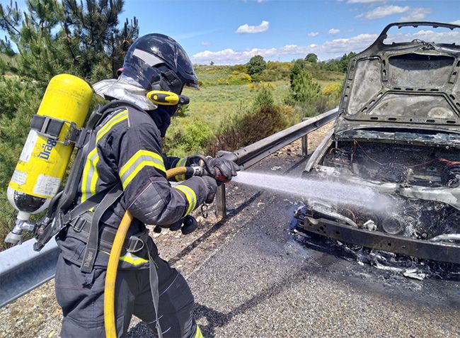 Los Bomberos procedieron simultáneamente a la extinción de las llamas en el vehículo y del incendio forestal. Mientras, uno de los carriles de la A-6 permaneció cortado durante una hora aproximadamente.